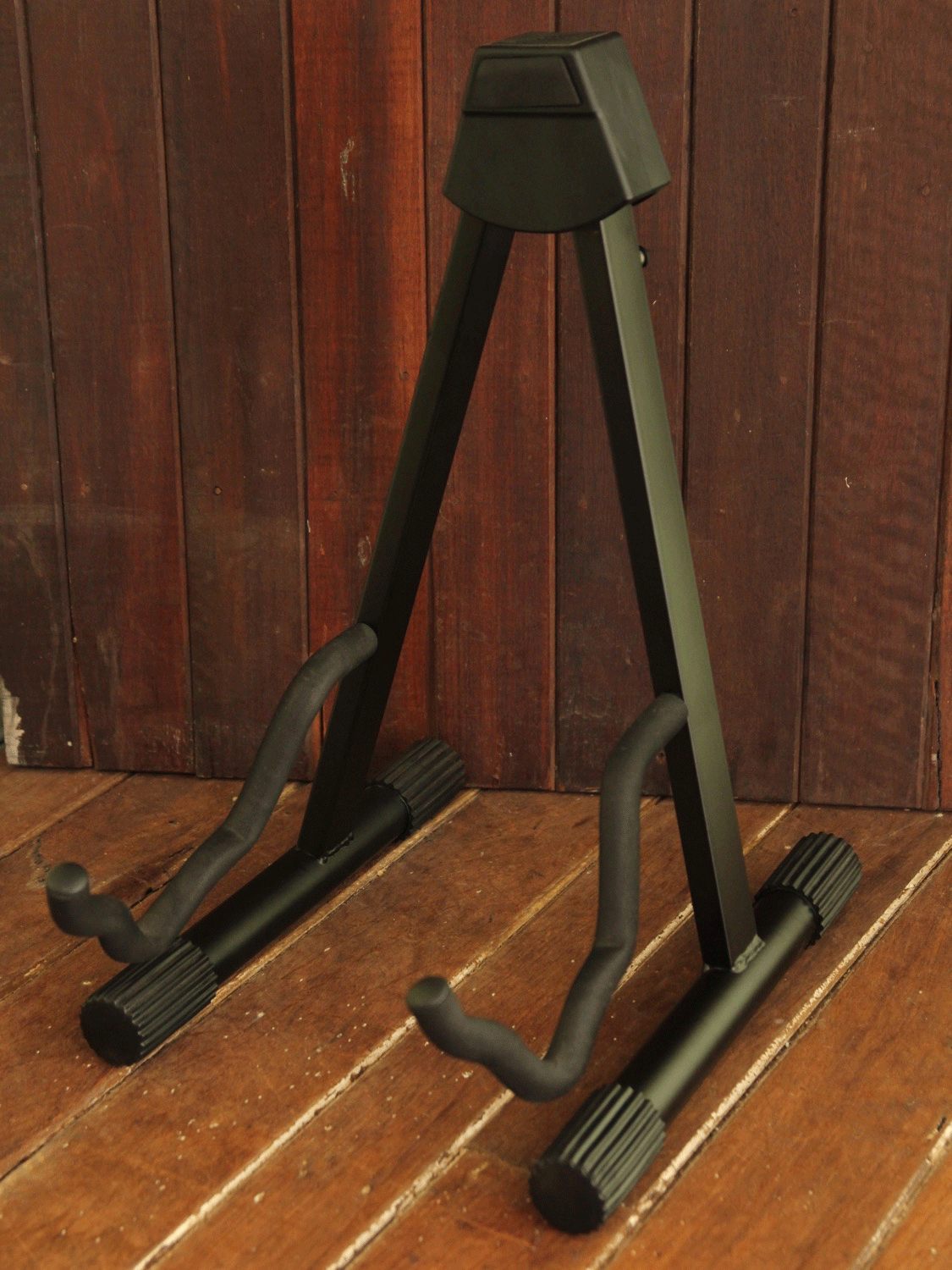 A-frame style, folding guitar stand. We use them here in the shop!