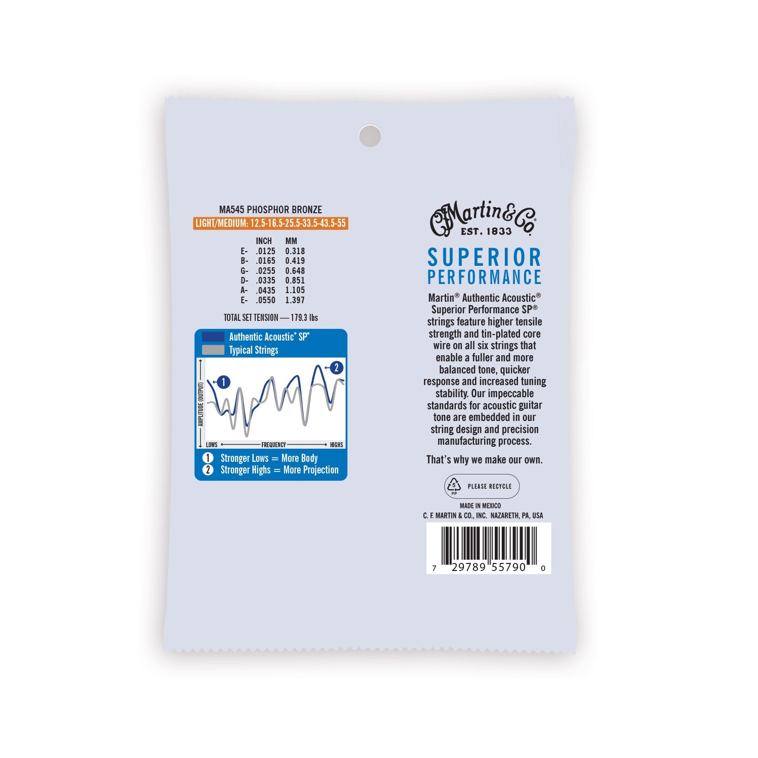 Accessories Martin Light/Medium Phosphor Bronze Authentic Acoustic Guitar Strings MA545
