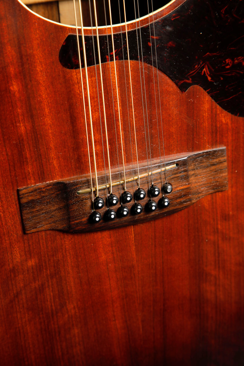 A very unique 12-string acoustic that sounds great! Comes with a hardshell case in poor condition.