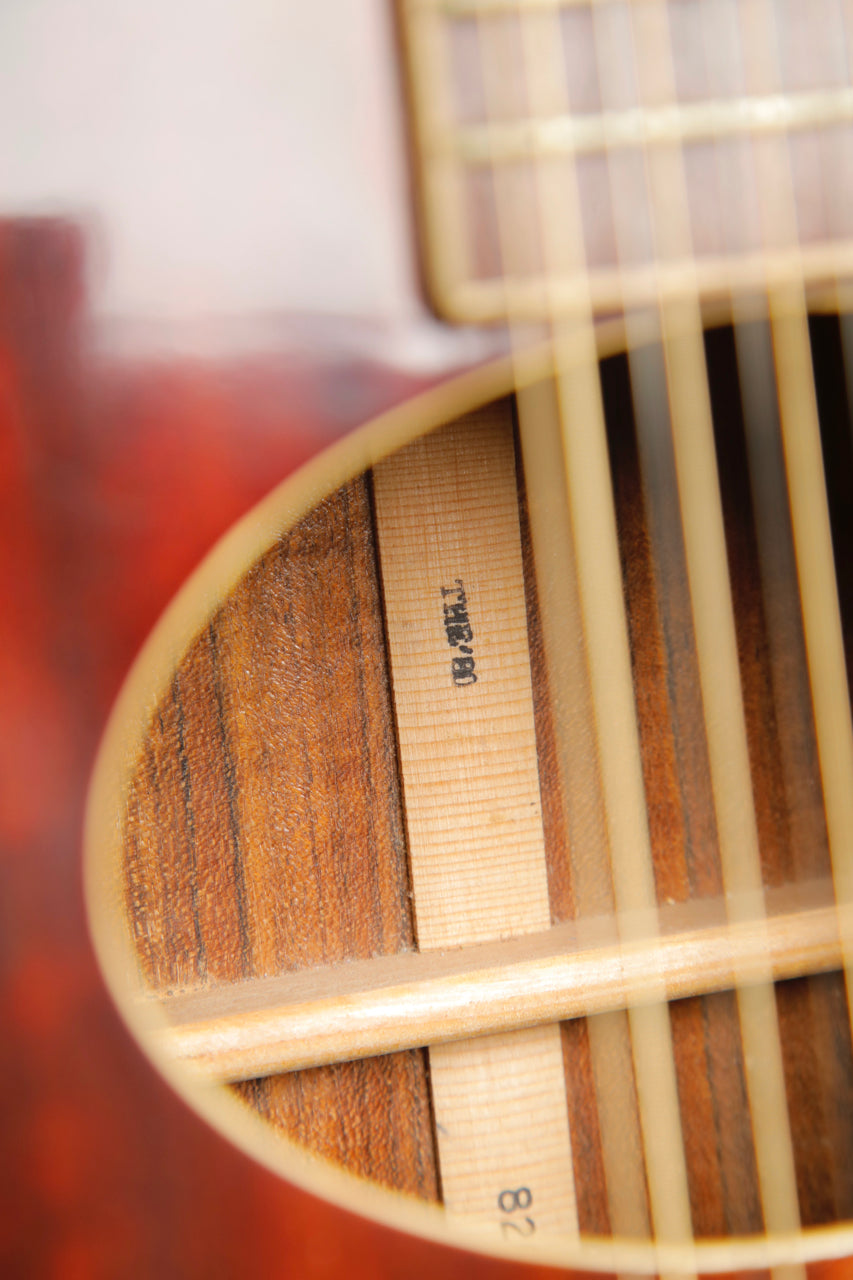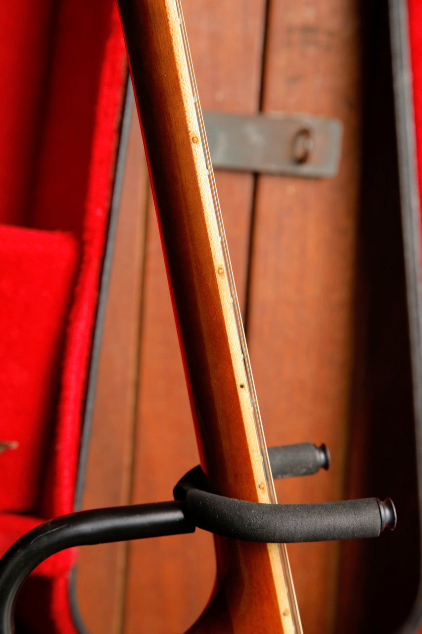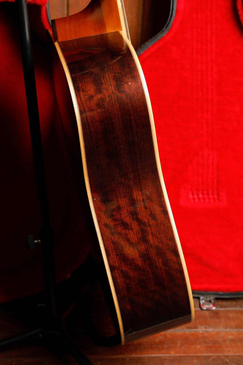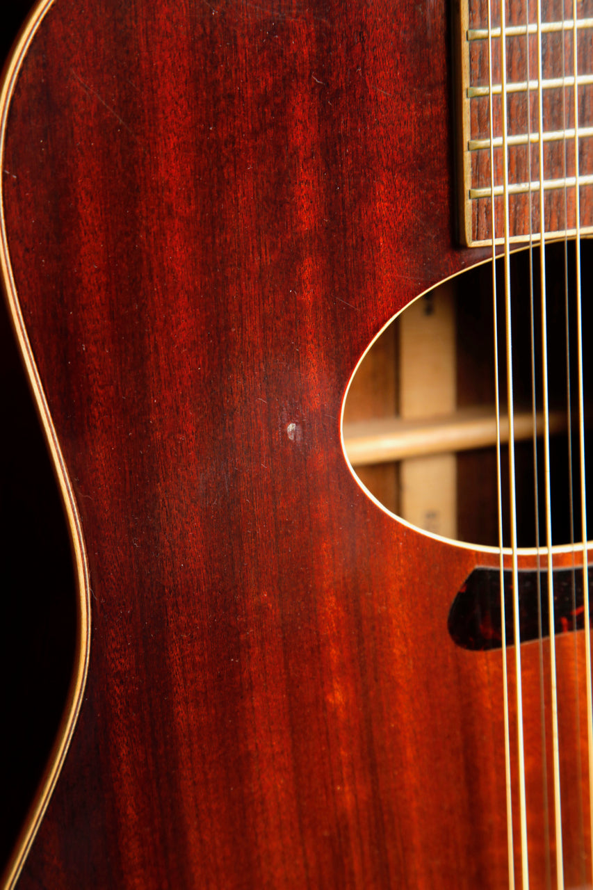 There are some signs of wear and age including small marks/dings and patina to the hardware including the brass nut and saddle. The frets also show a small amount. ofwear consistent with age.