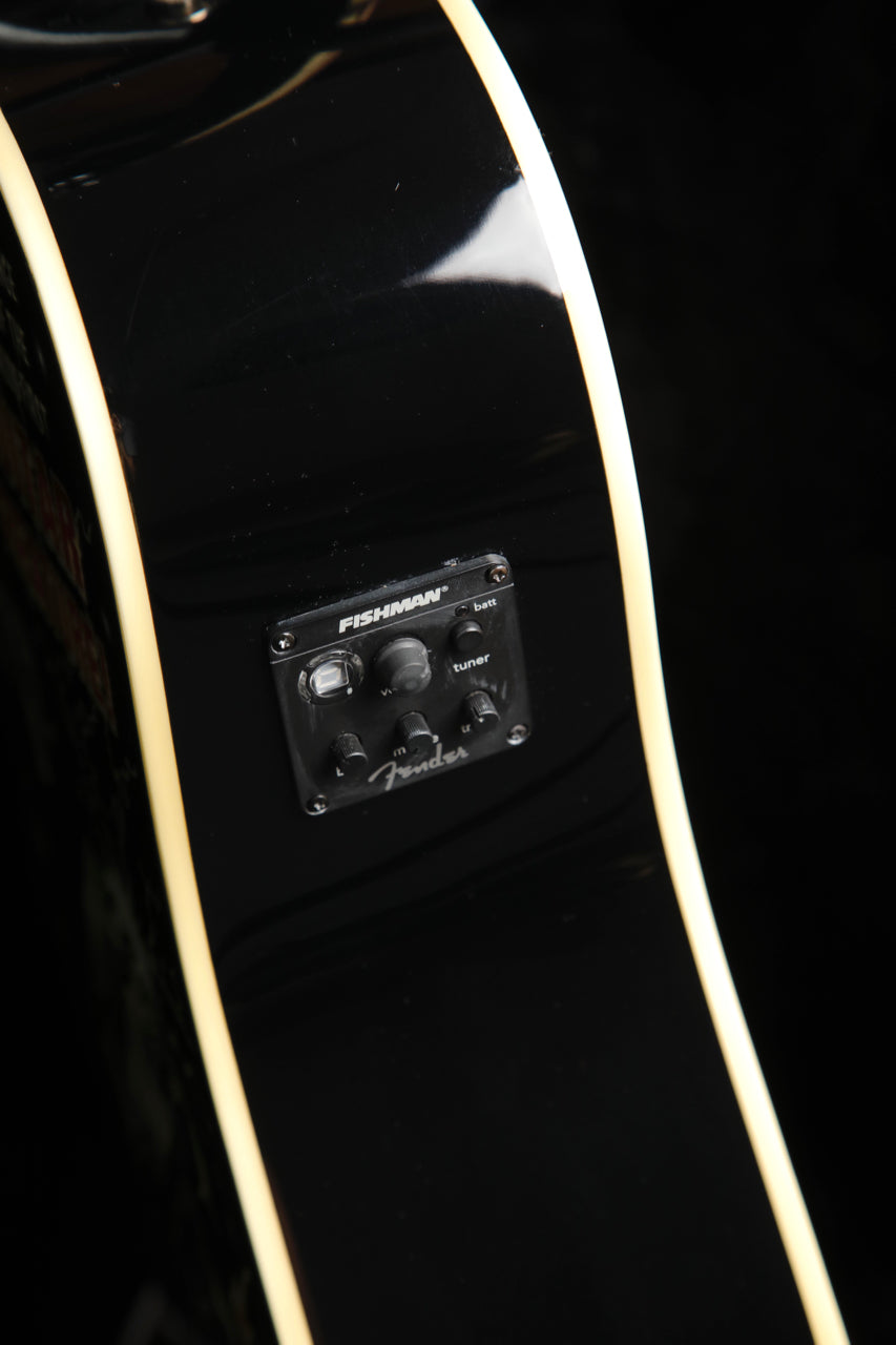 Pre-owned in excellent condition, this Fender Vince Ray Outer Space Bucket features eye-catching artwork by Vince Ray. This guitar also plays nicely and sounds great with. a spruce top and a Fishman pickup system.