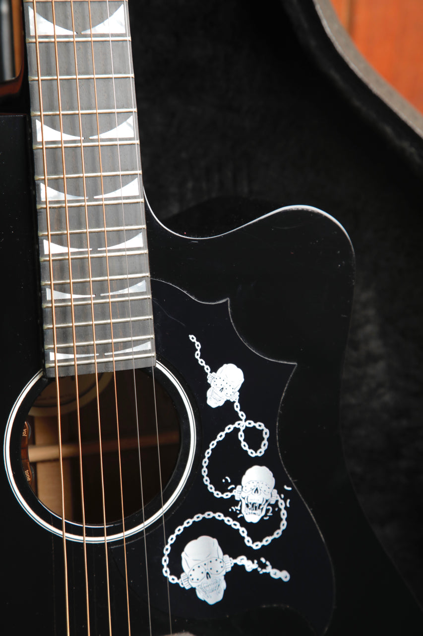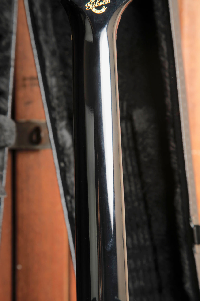 Here's a great find for the collector or player alike! This Gibson Dave Mustaine Songwriter features a Gloss Ebony finish along with a Megadeath inspired pickguard and headstock inlay.
