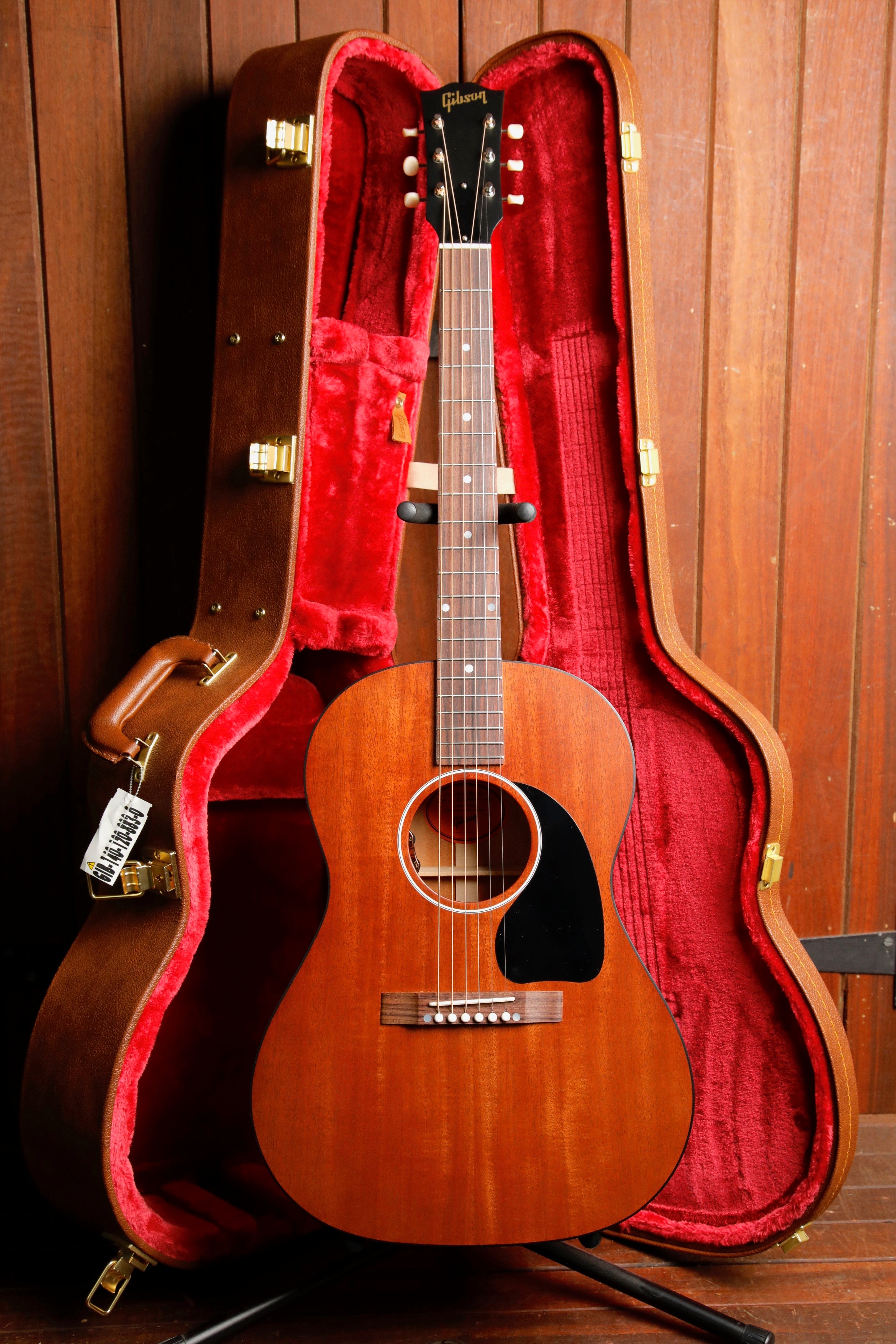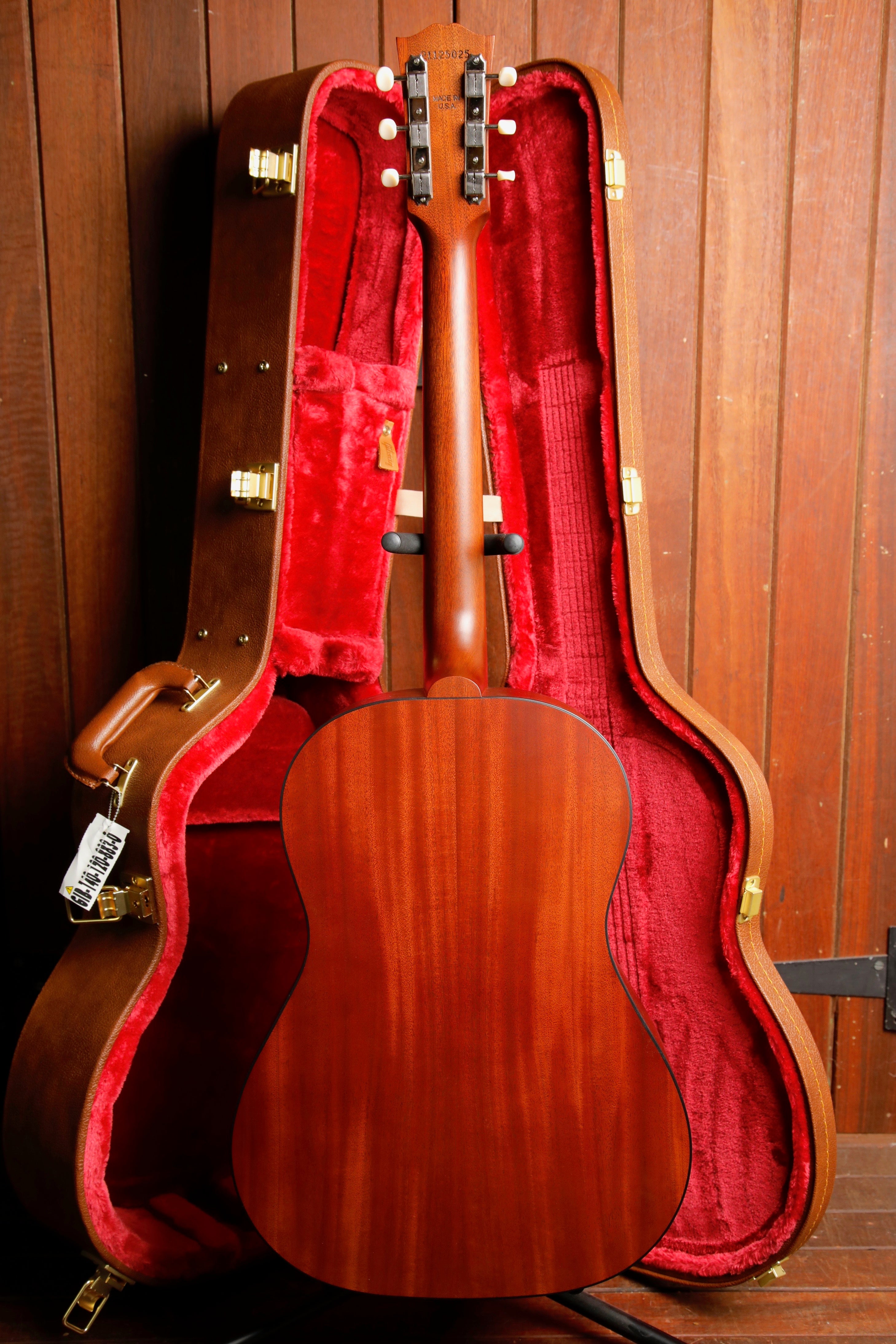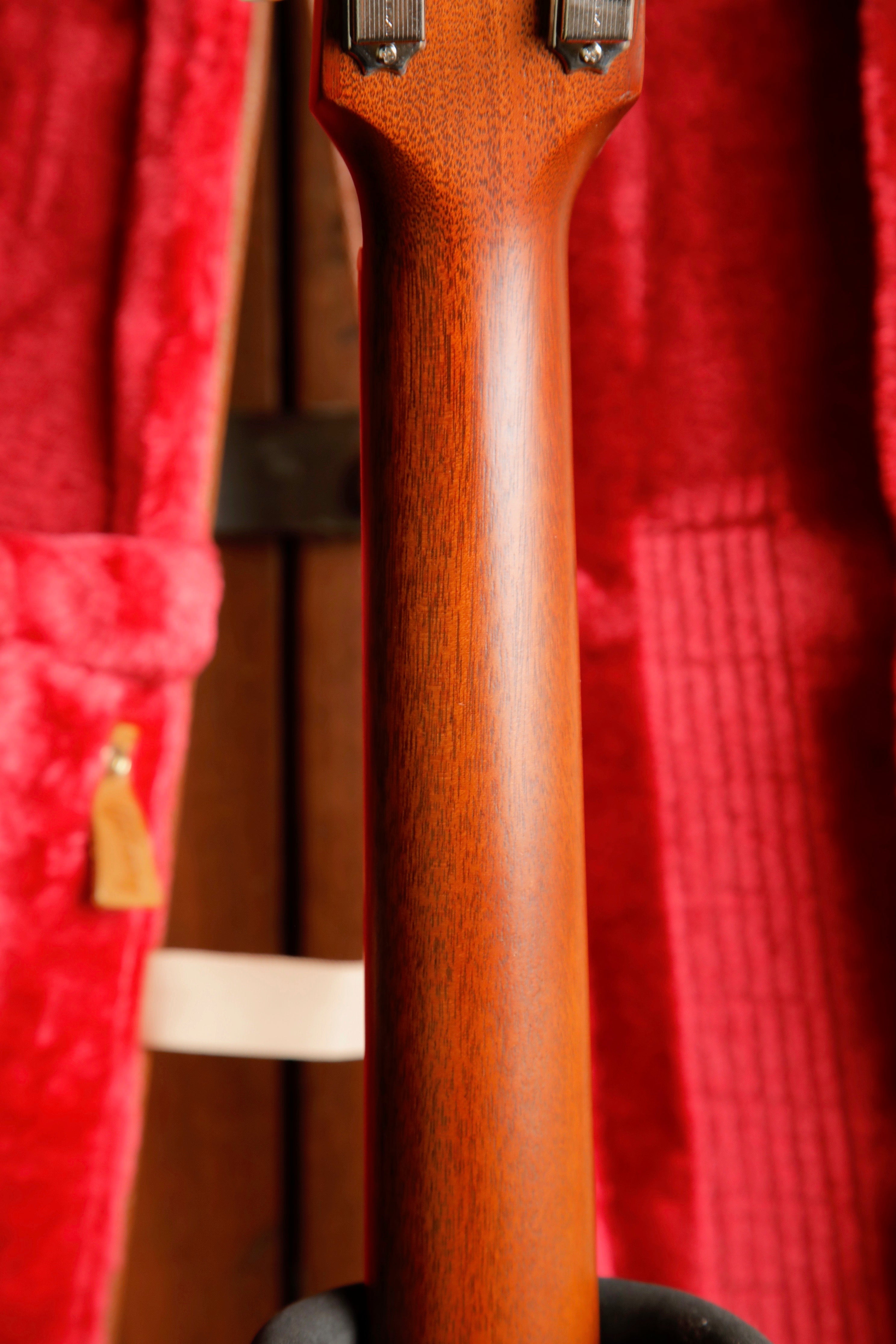 The “concert depth” body is slightly thinner than the body on a Hummingbird Standard, giving it a leaner and tighter bass response that sits perfectly in the mix and also makes it easier to hold. The utile neck is attached to the body with a compound dovetail neck-to-body joint, and like all Gibson acoustic guitars, it is affixed with hot hide glue.
