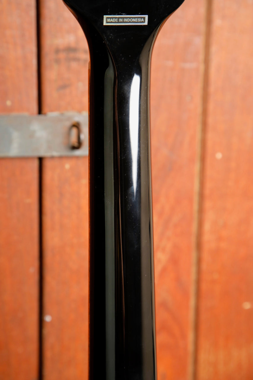 There are only very light signs of wear on this guitar including a scratch on the back from a belt buckle. The frets are in great condition and the action is set nicely.