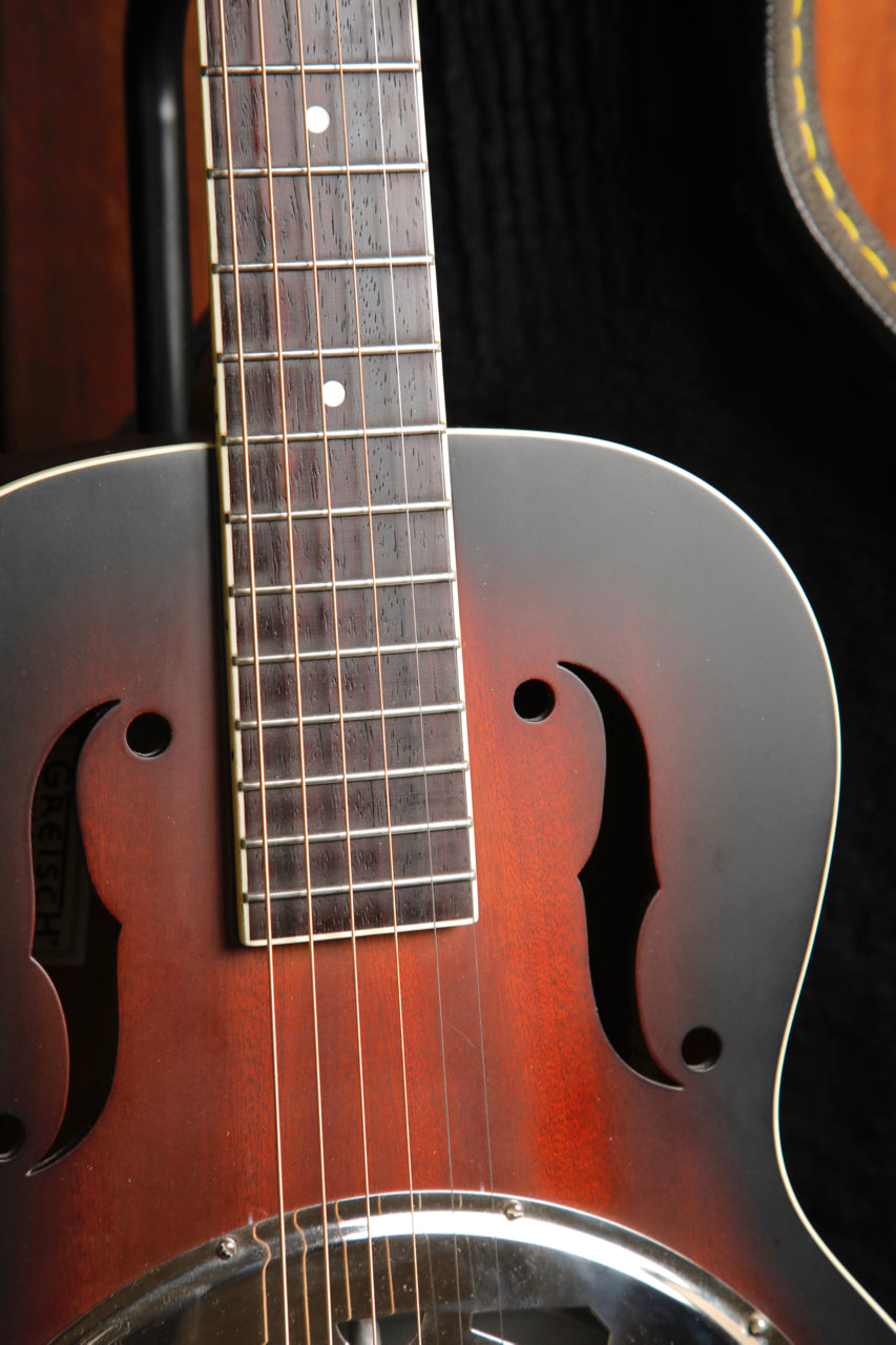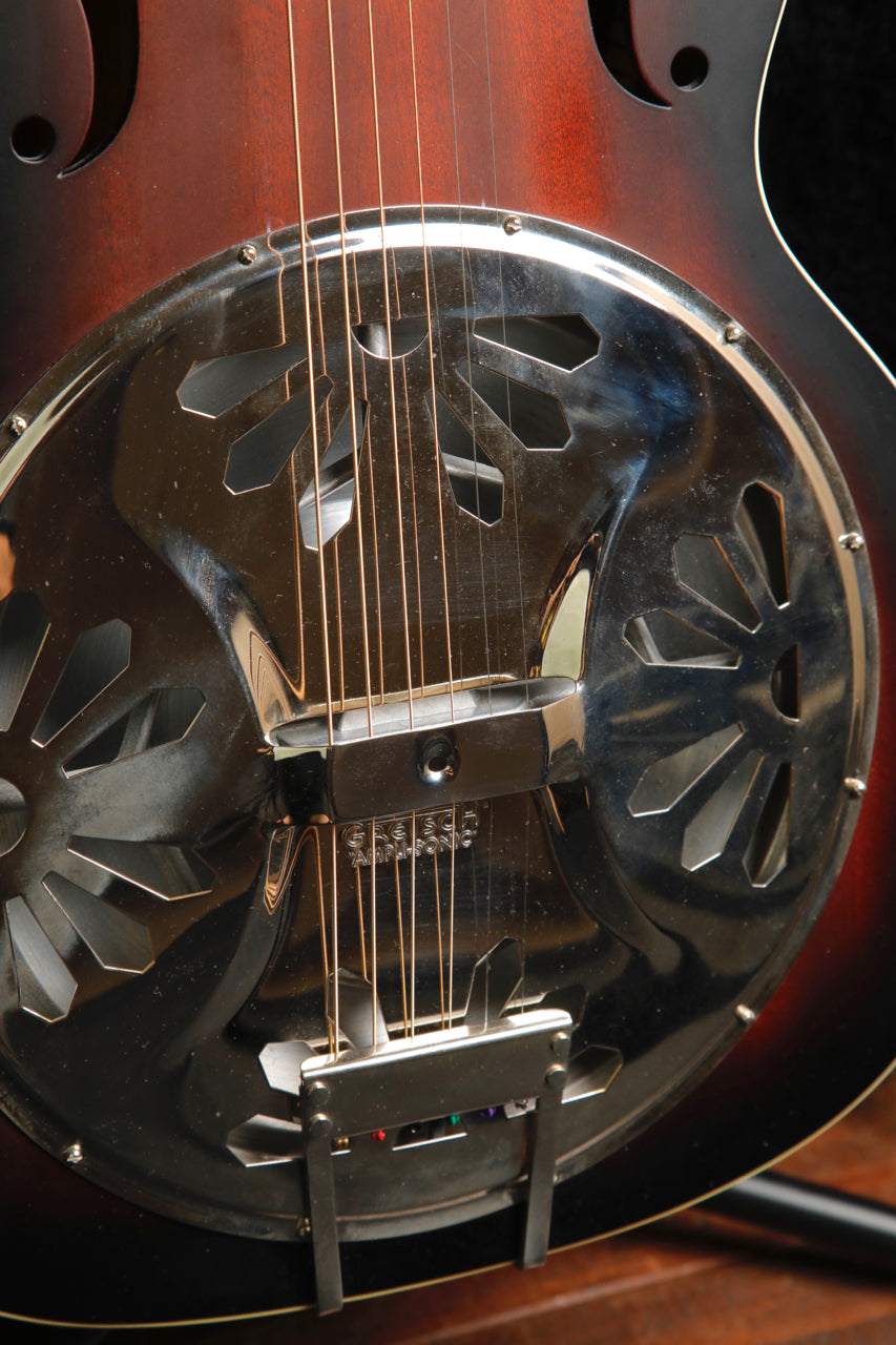 Pre-owned in very good condition, this Gretsch G9220 is a great sounding wooden body resonator. This guitar features a hand-spun resonator cone which offers great projection and characteristic tone.