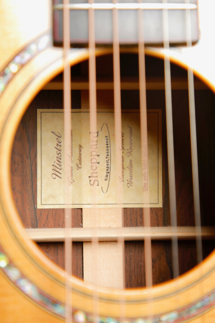 This Sheppard Minstrel Grand Auditorium Cutaway is a finely crafted instrument featuring high quality tonewoods. This Gerald Sheppard guitar is in excellent pre-owned condition and features a European Spruce top paired with Brazilian Rosewood back & sides.