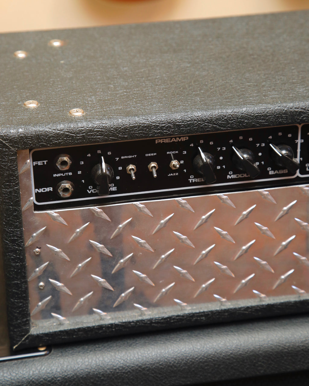 This amplifier shows some signs of wear with some slight warping of the metal face plate and lifting of the vinyl as pictured. It is functioning well and sounding great!