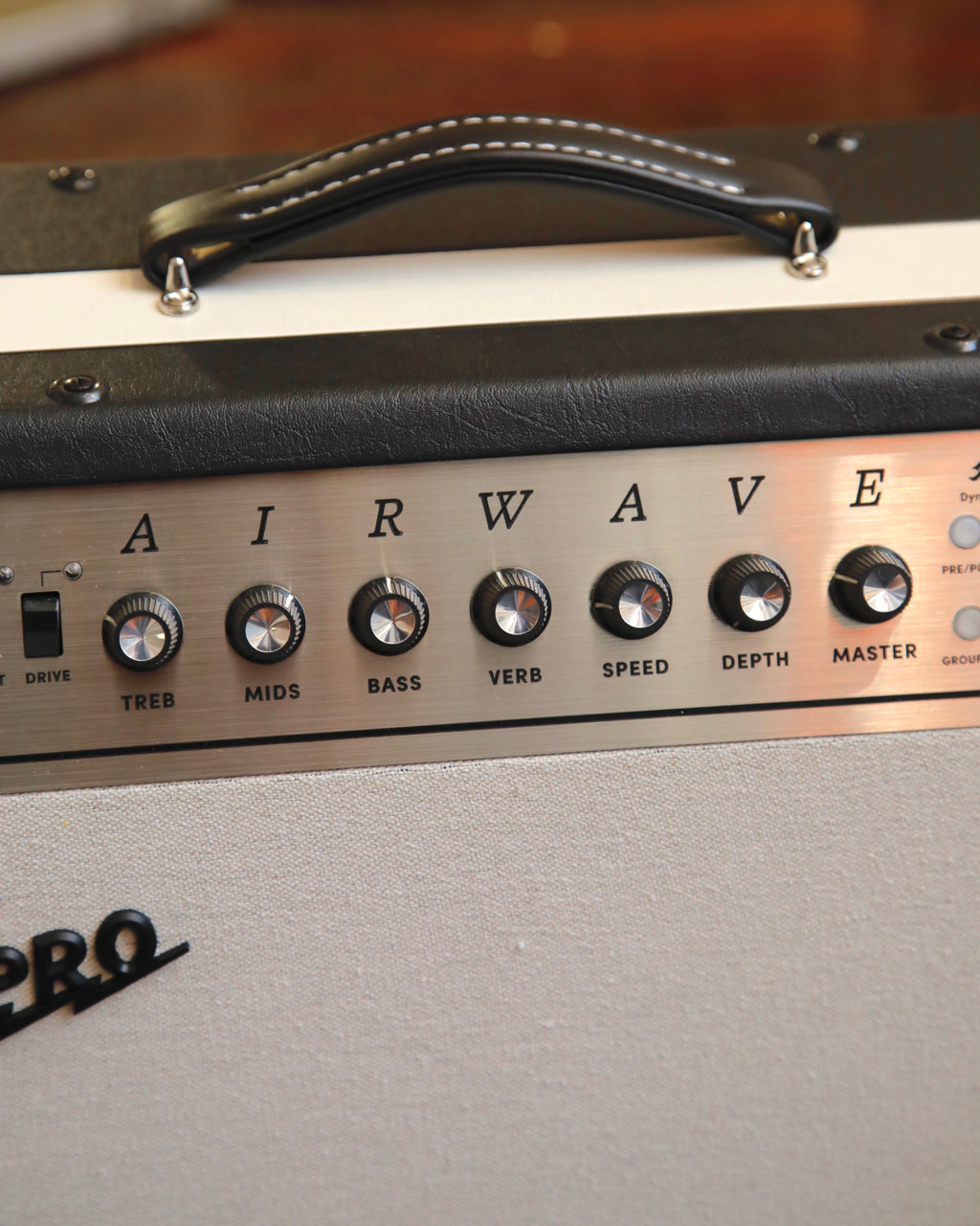 In-studio, players can mic the Airwave as a standard tube amp and record classic Supro tone in traditional fashion. Or, you can go direct into any console or DAW via stereo XLR outputs, combining all of the character of an analog tube amp with a vast array of custom cabinet simulations, resulting in an infinite number of inspiring tones and unparalleled control.