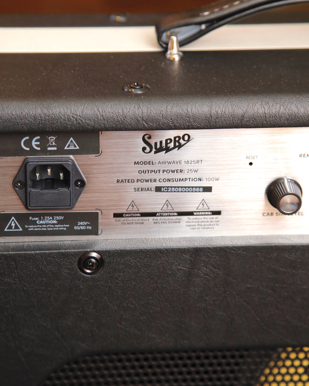 A new chapter in our storied legacy, the Airwave combines traditional Supro tube technology and onboard analog effects with a cutting-edge suite of mic’d cabinet emulation software powered by Two notes to provide a vast array of modern and vintage sounds in a stage-ready, studio-friendly 25W, 1x12 combo format. The 12AX7 tube driven preamp of the Airwave features a 3-band EQ along with Boost, Drive, Tremolo and Reverb effects plus a master volume that sets the level of the signal sent to the Class-A 6V6 output tube power section. Perfect for on-stage performance, in-studio recording or at-home practice, players can run the Airwave as a standard tube amp with its onboard speaker, run a line out direct to house speakers or any DAW, or plug in their favorite headphones and practice with access to a bevy of classic Supro tones. The options are limitless.