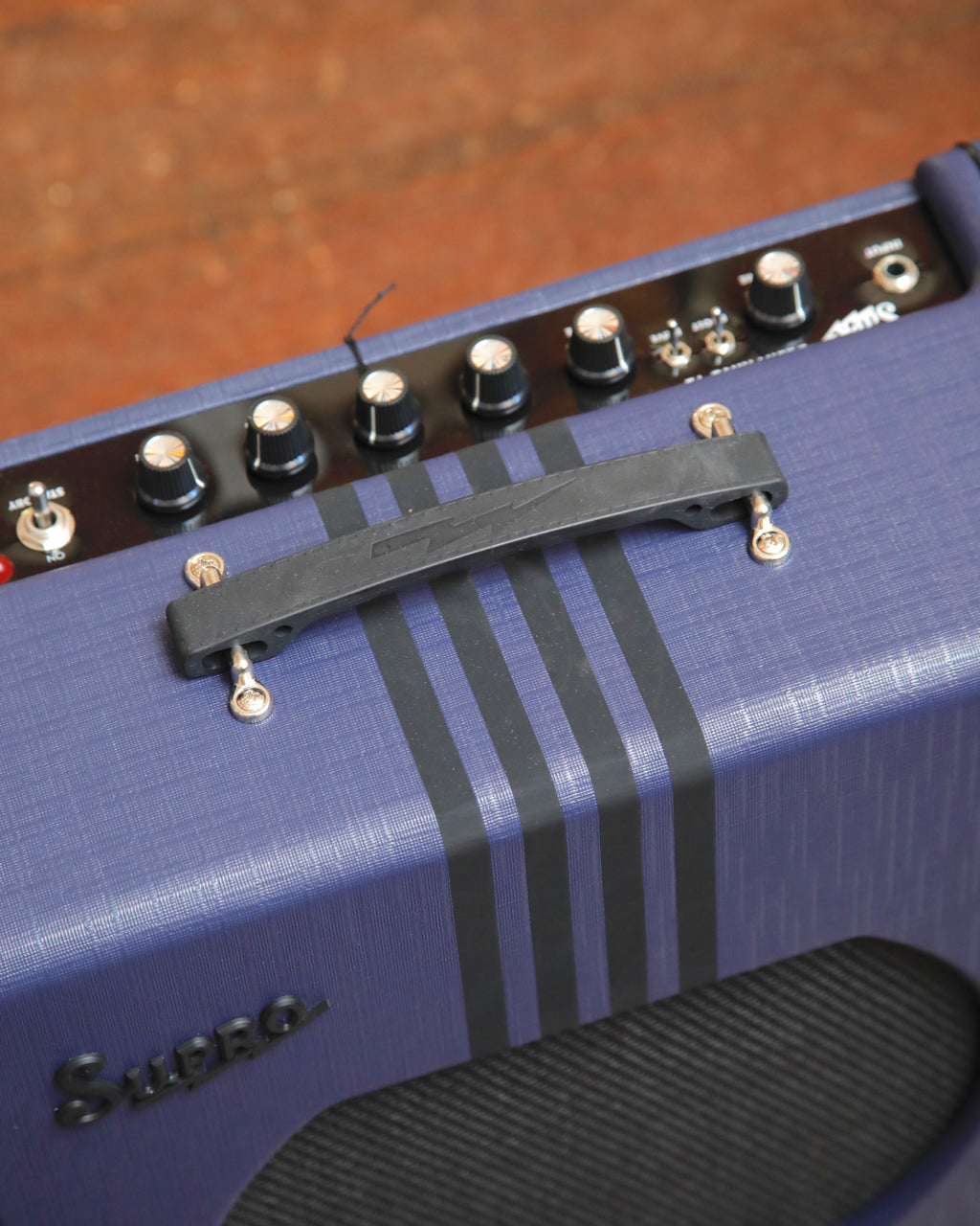 Hearkening back to the original Supro combo amplifiers, the Delta King 12 features a custom, poplar cabinet design, and two unforgettable colorways: custom tweed with black stripes, and black with cream stripes.