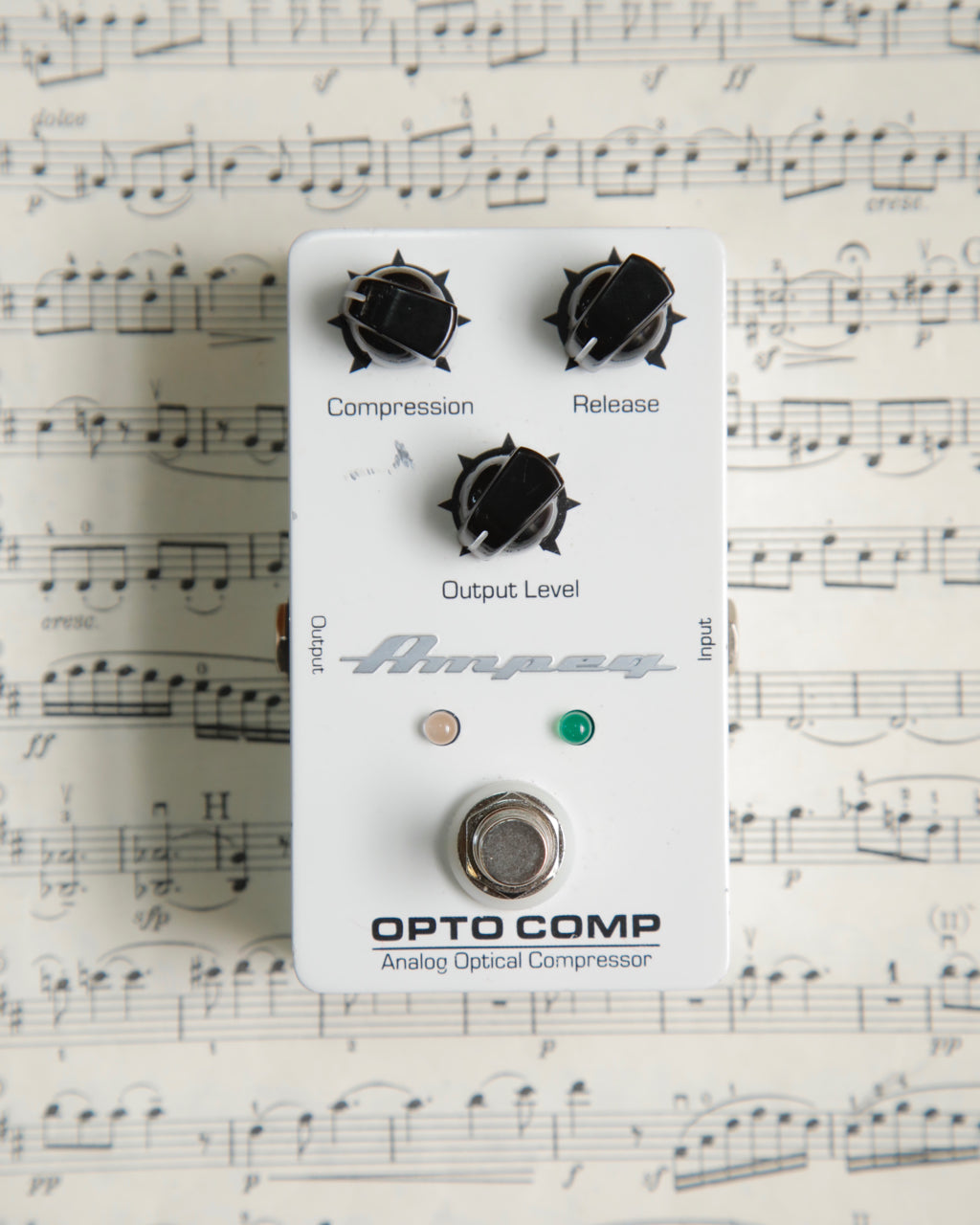 The Ampeg Opto Comp Analog Optical Compressor pedal utilizes an optical circuit to deliver smooth, vintage style compression to add headroom and sustain to your guitar or bass. Dial in a fast, subtle style to control peaks or crank up the compression to add a unique character. Featuring a roadworthy all-metal chassis and true bypass switching, the Opto Comp Analog Optical Compressor brings your tone to new heights. Like all Ampeg products, your Opto Comp Analog Optical Compressor pedal is designed by musicians and built using only the best of components. Each pedal is tested to confirm that it meets our specifications, and we believe that this pedal is the absolute best that it can be.