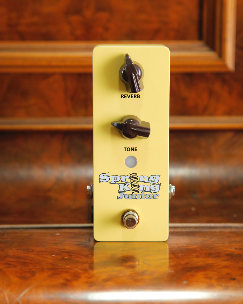 Twenty- five years ago, Danelectro launched the Spring KingTM; a reverb pedal with a real spring tank! But there was a problem! Not only were the sales huge, the pedal itself was huge! Introducing the Spring King JuniorTM - the best reverb tones ever, with a real spring tank in a small size that fits on your pedal board!