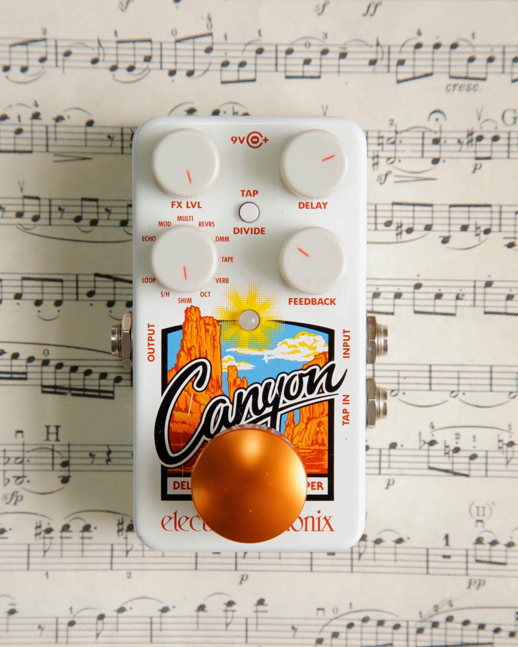 Packed with more power than pedals taking up more real estate, the compact EHX Canyon Delay & Loopers features a collection of awe-inspiring effects. From pristine digital delay to warm and warbly tape echo, reverse and modulated delays, cascading octave delay and shimmer… even an exquisite Deluxe Memory Man emulation. There are ten different effects in all plus a fully featured looper. Internal or external Tap Tempo with tap divide and a chasm full of intuitive secondary knob controls deliver a truly grand experience.