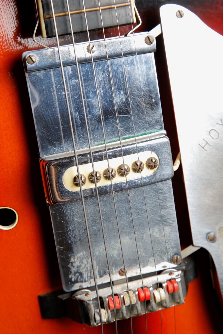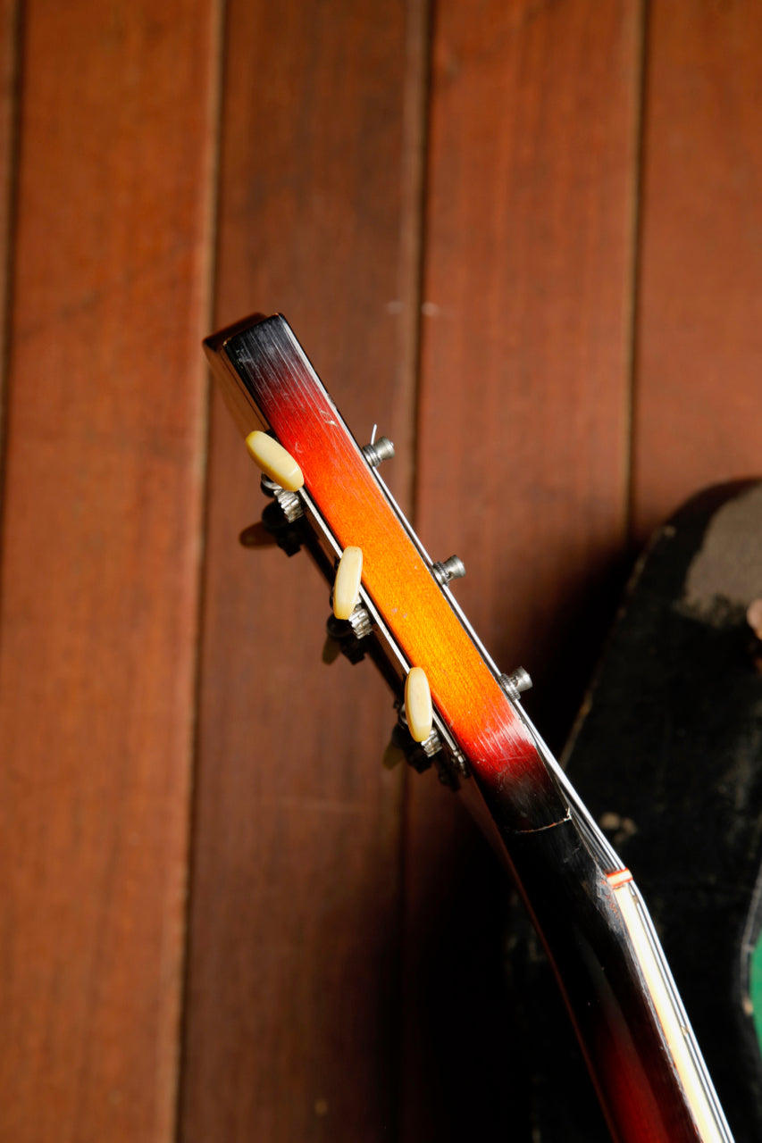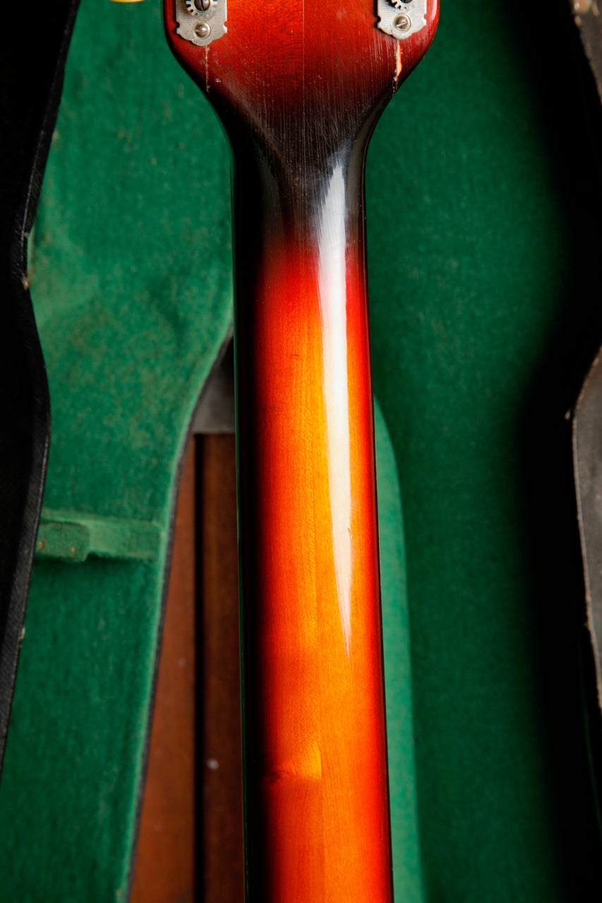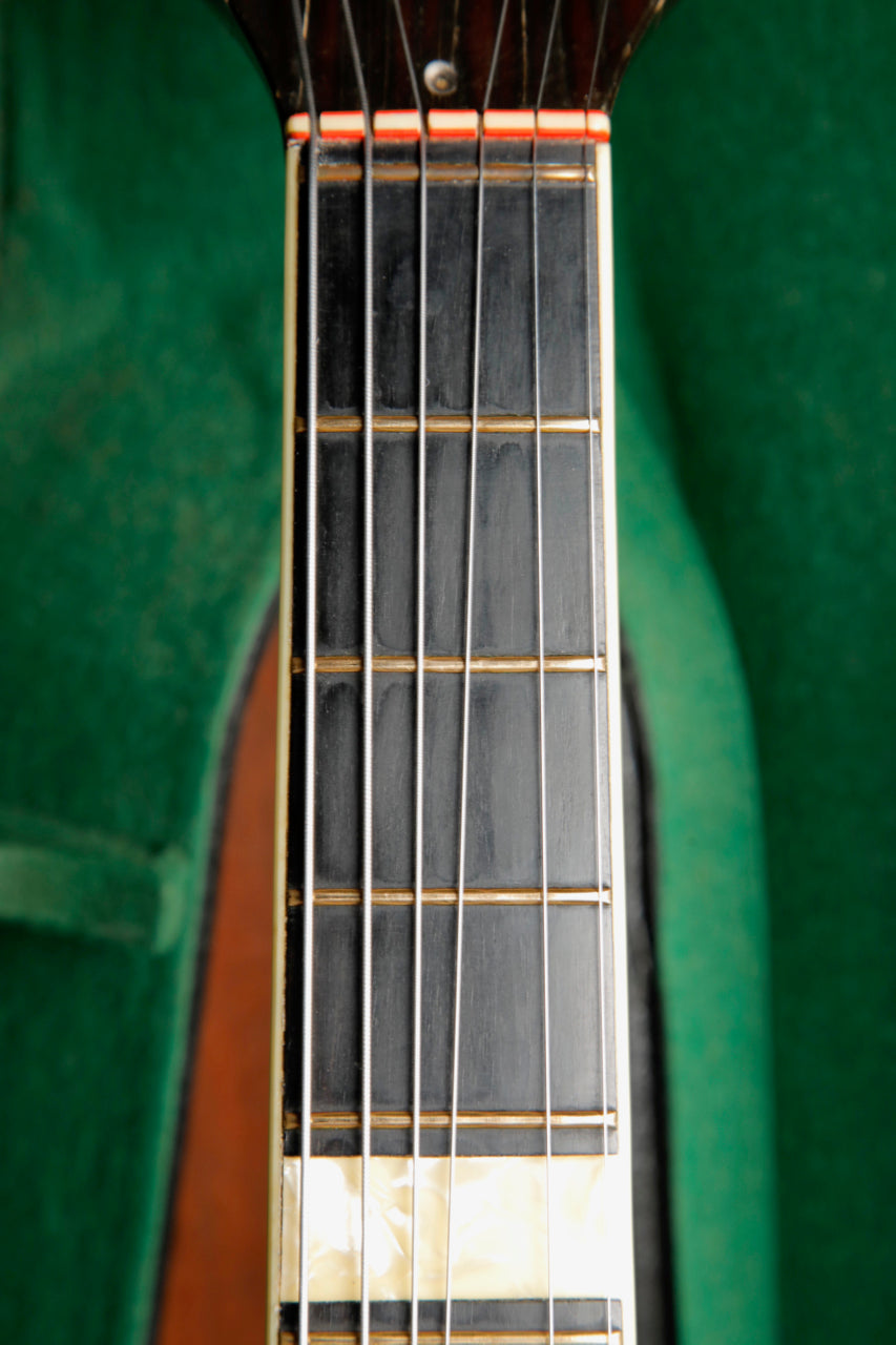 Tis guitar is in good condition for its age but is not without signs of wear and use. There is patina and scratches to the hardware, lacquer checking including large check lines on the back of the headstock and other bumps. The frets show much less wear than you'd expect on a guitar of this age.
