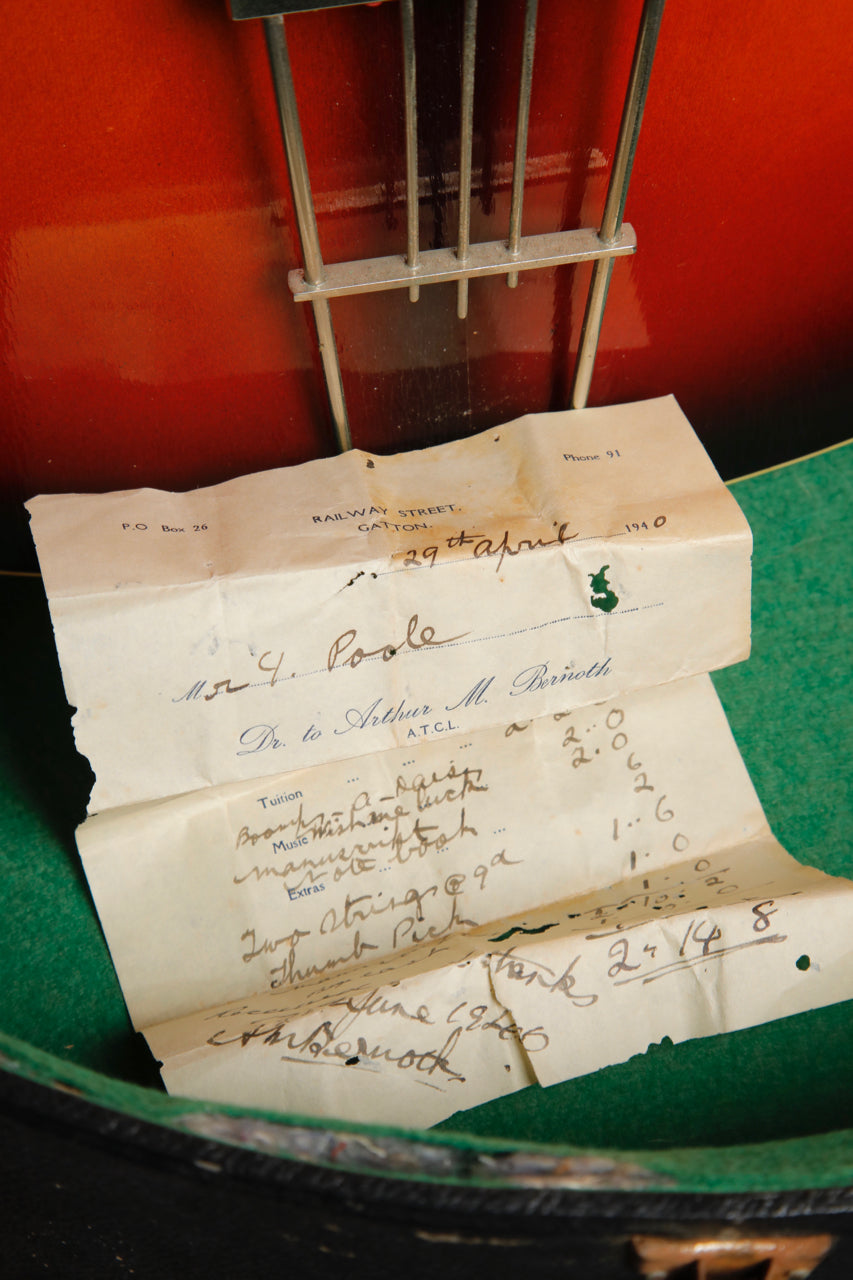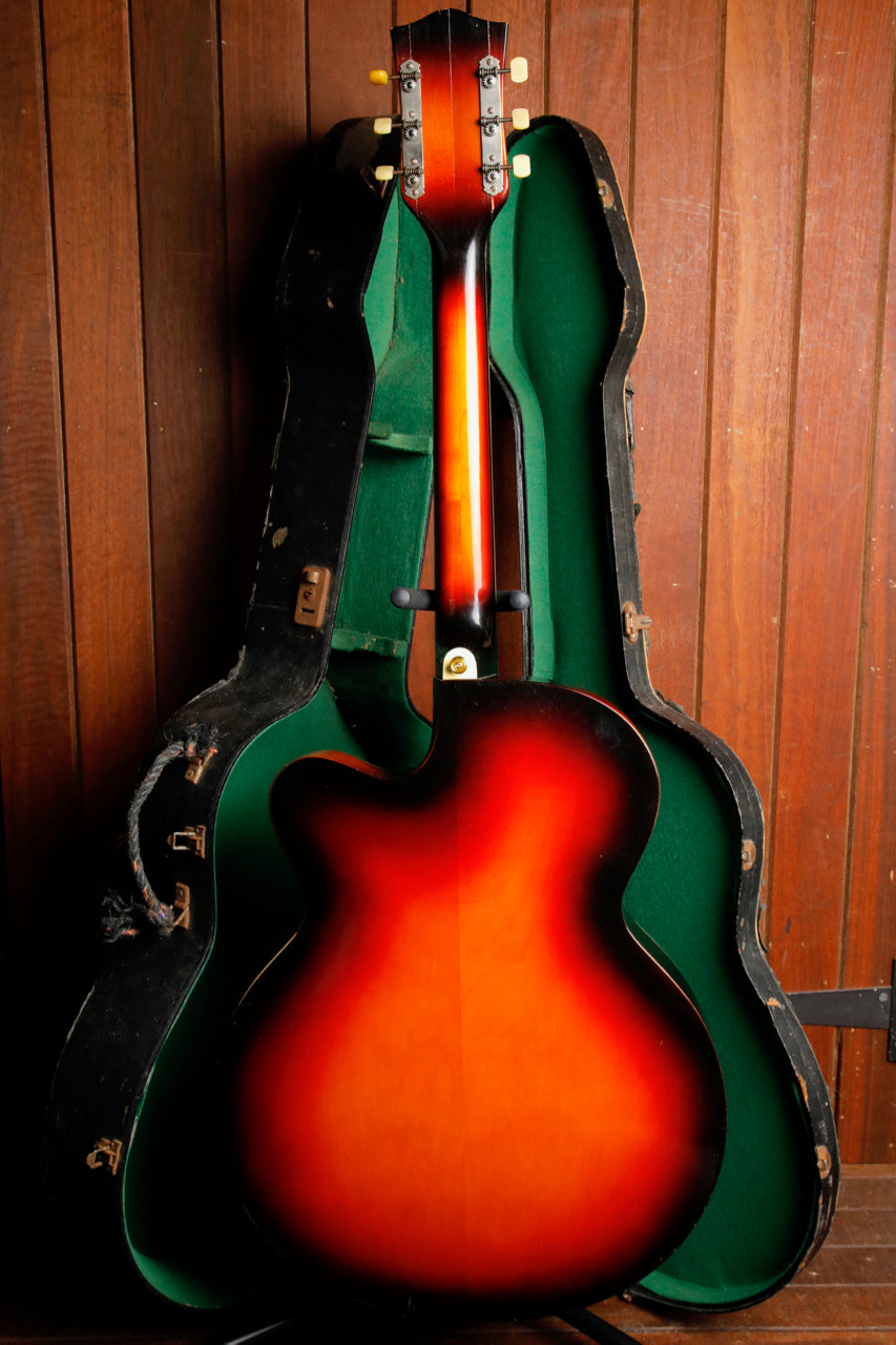 A very cool vintage German archtop. Comes with original hardshell case in fair condition and a tuition receipt dating to 1940.