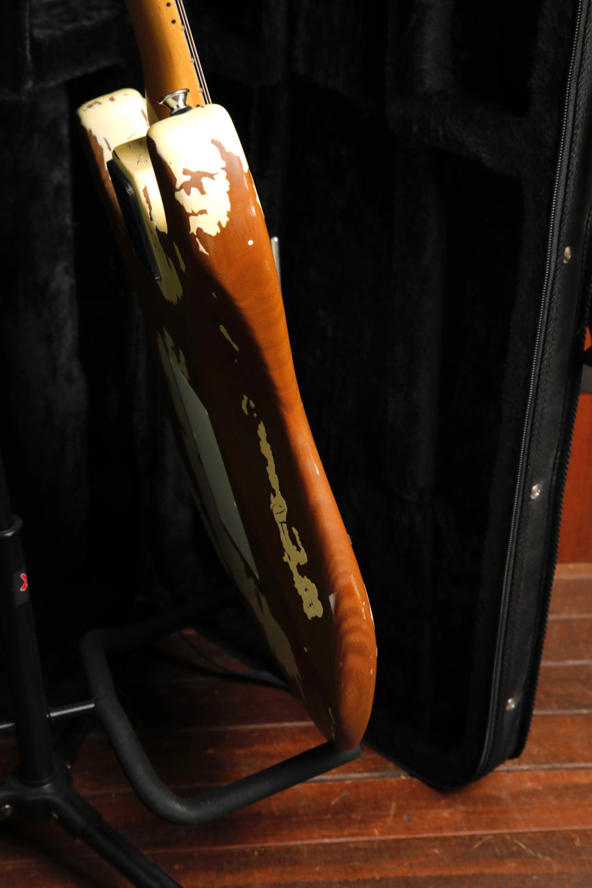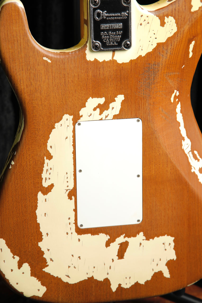 As if it's been through 20 years of touring, the Henrik Danhage Limited Edition Signature Pro-Mod So-Cal Style 1 sports a heavy White Relic finish topped with a 3-ply white pickguard, reverse licensed Fender® Strat headstock and relic'd neck, fingerboard and chrome hardware. A Charvel multi-fit hardshell gig bag is also included.