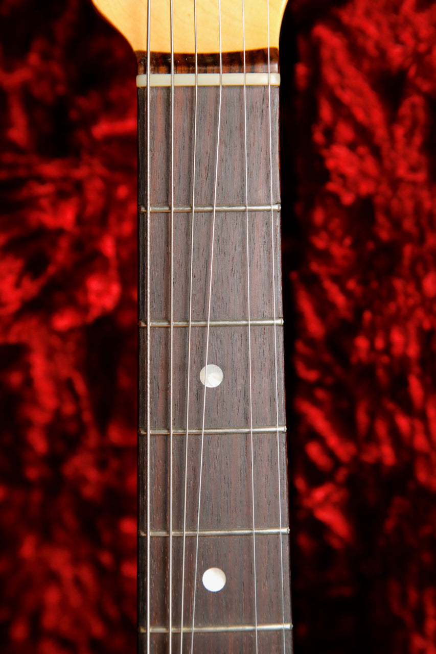 This guitar has seen only light play with some tiny scratches and patina. The pickups have been changed to Klein Epic Series pickups by the previous owner. The frets are in great condition with minimal wear as pictured.