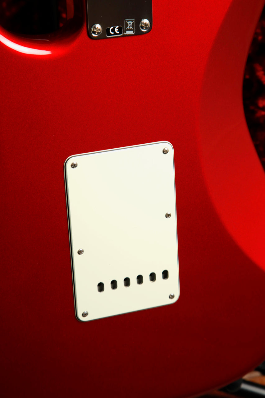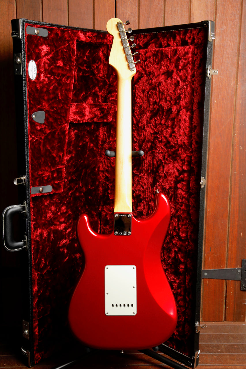 Pre-owned in excellent condition, this Fender American Original '60s Stratocaster looks great in a Candy Apple Red finish with a 3-ply Mint Green Pickguard.