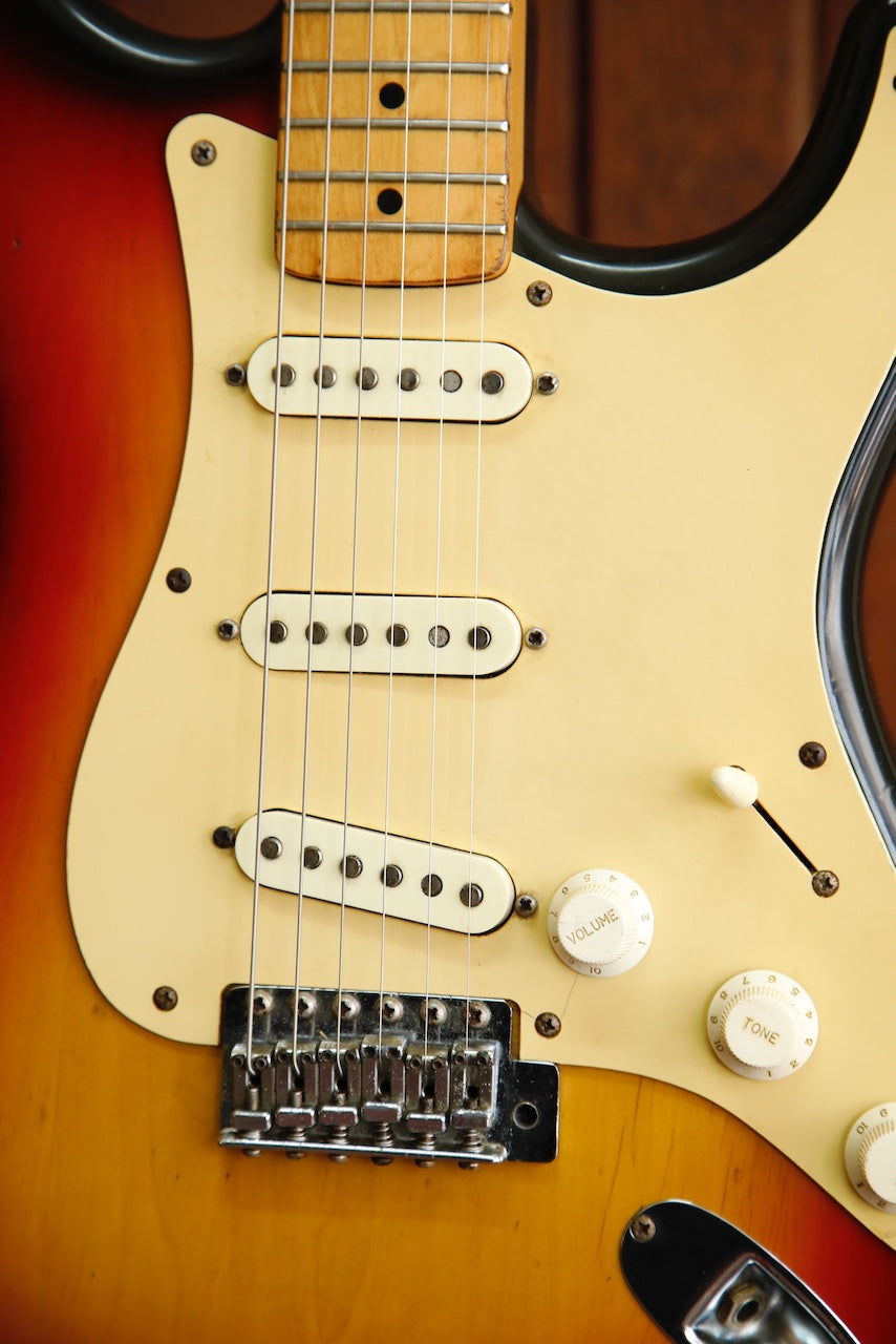 Here's a very cool Greco SE-800 S made in Japan in 1978. This Greco is in good condition for its age and is playing well with a very low action. A very neat early greco finished in a sunburst and equipped with a 1-piece maple neck with walnut skunk stripe.