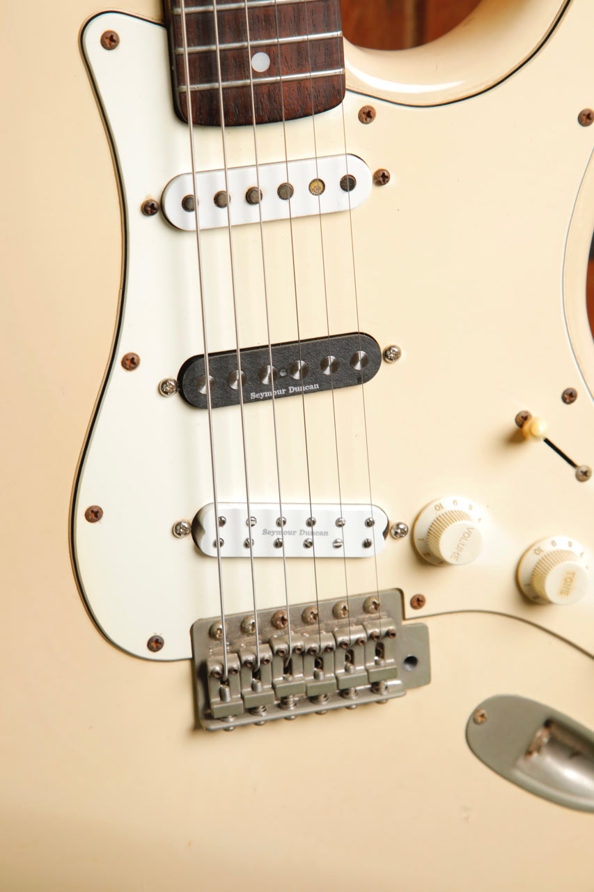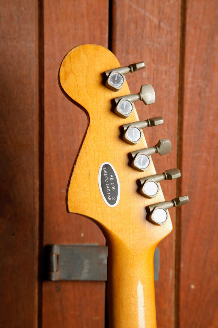 Pre-owned in good condition, this Greco SE-500 is a neat '70s made in Japan Strat. This guitar has been upgraded with a Seymour Duncan SSL-4 Quarter Pounder in the middle position and a SJBJ-1B in the bridge.