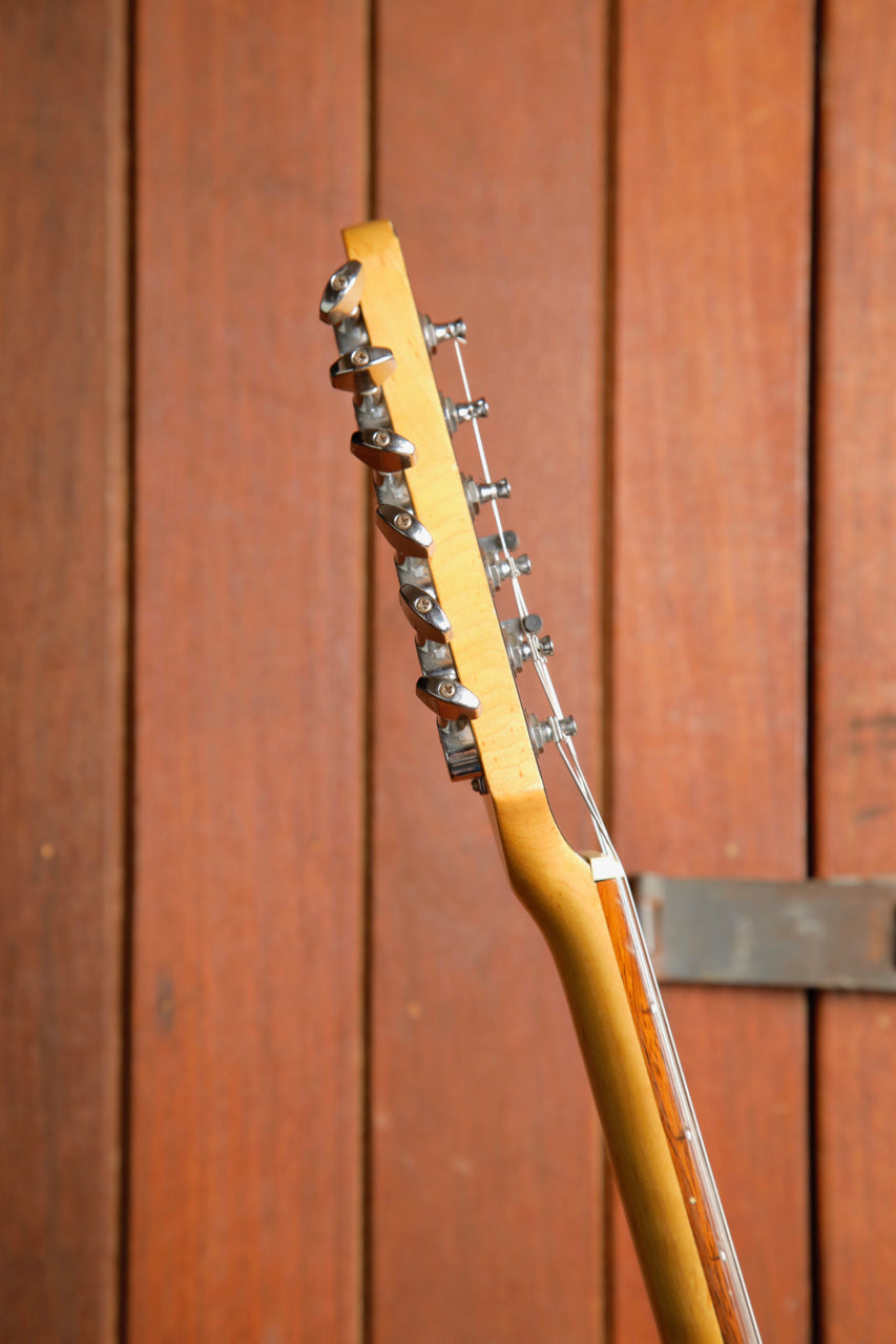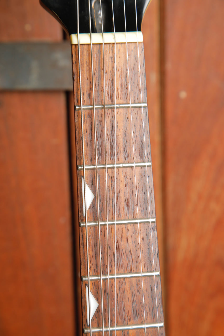 This guitar has seen some play over the years with some scratches, patina and evidence of previous stickers. The frets show some wear mainly below the 7th fret as pictured.