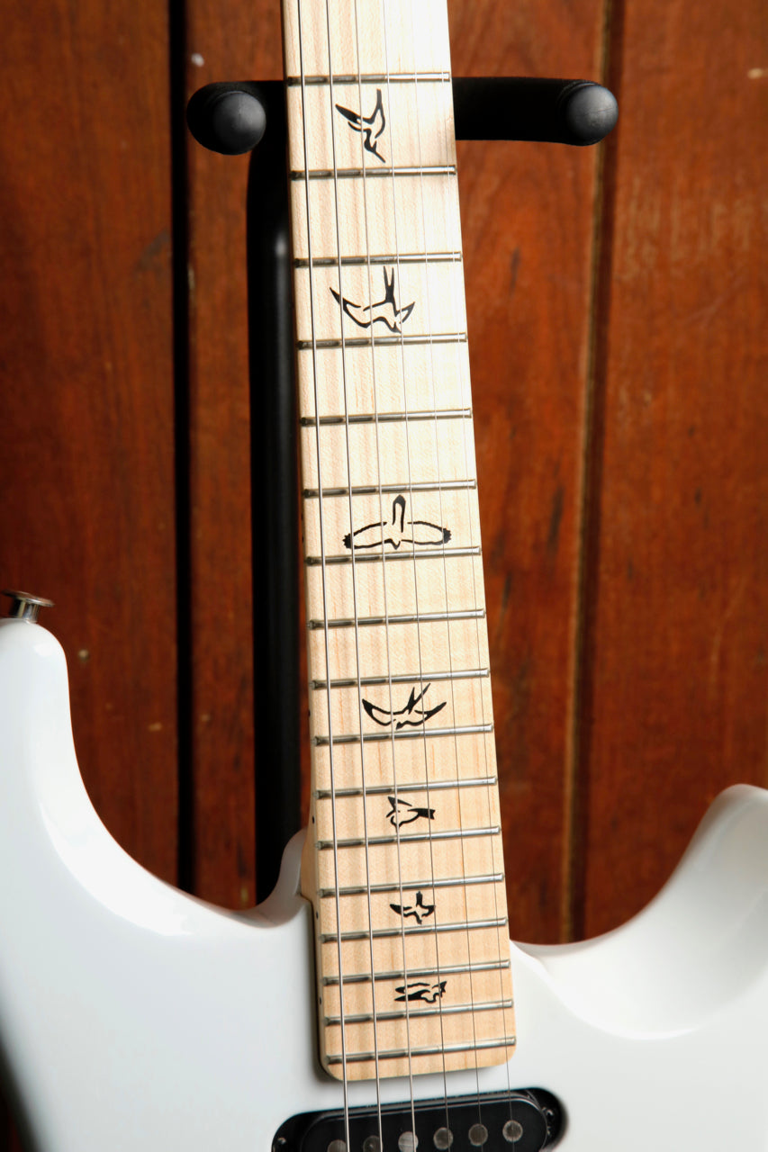 Here is a great playing, USA made PRS! This Paul Reed Smith Mark Lettieri Fiore is finished in a Sugar Moon and features a HSS pickup configuration . A maple neck & fretboard with bird inlays finish off this beautiful guitar.