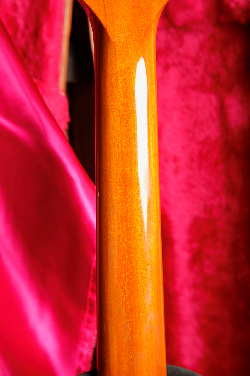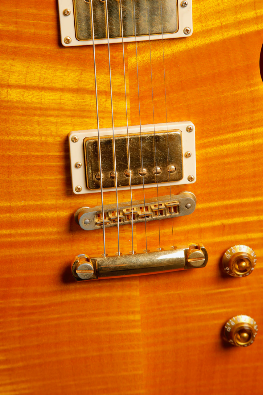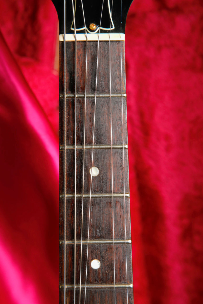 There are some signs of use and and wear including patina to the gold plated hardware and some tiny marks to the finish. The frets are in great condition with minimal wear as pictured.