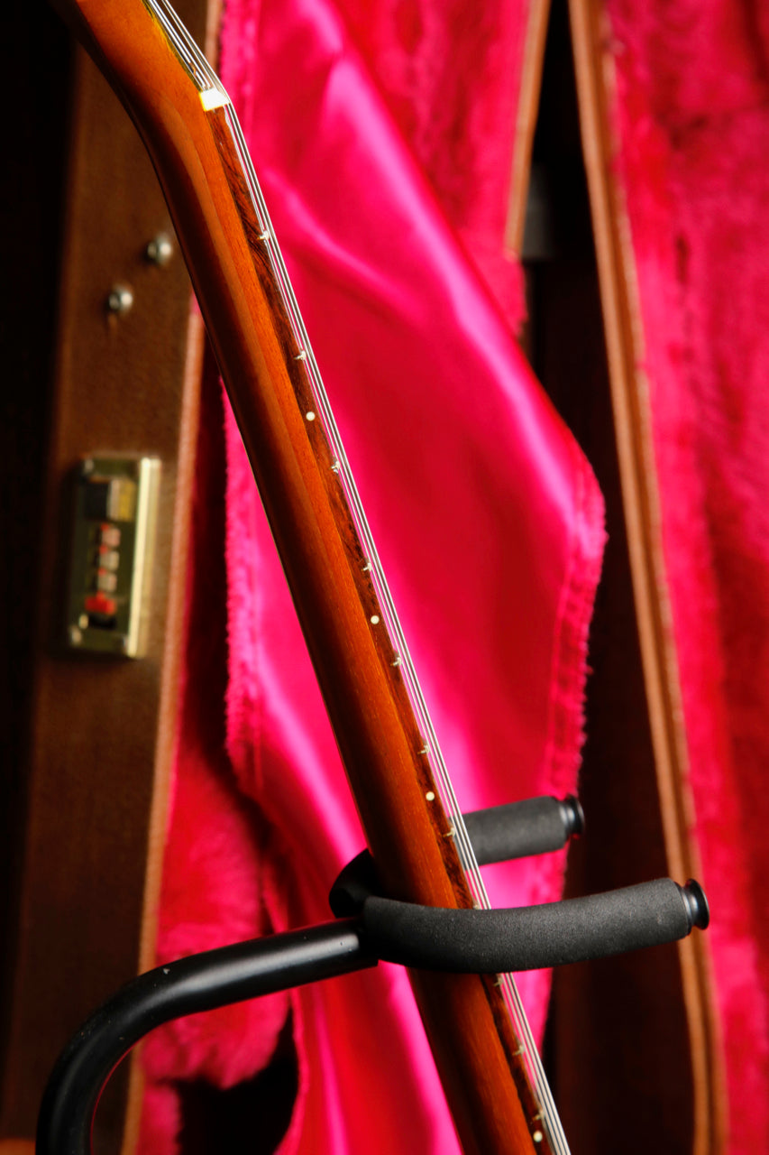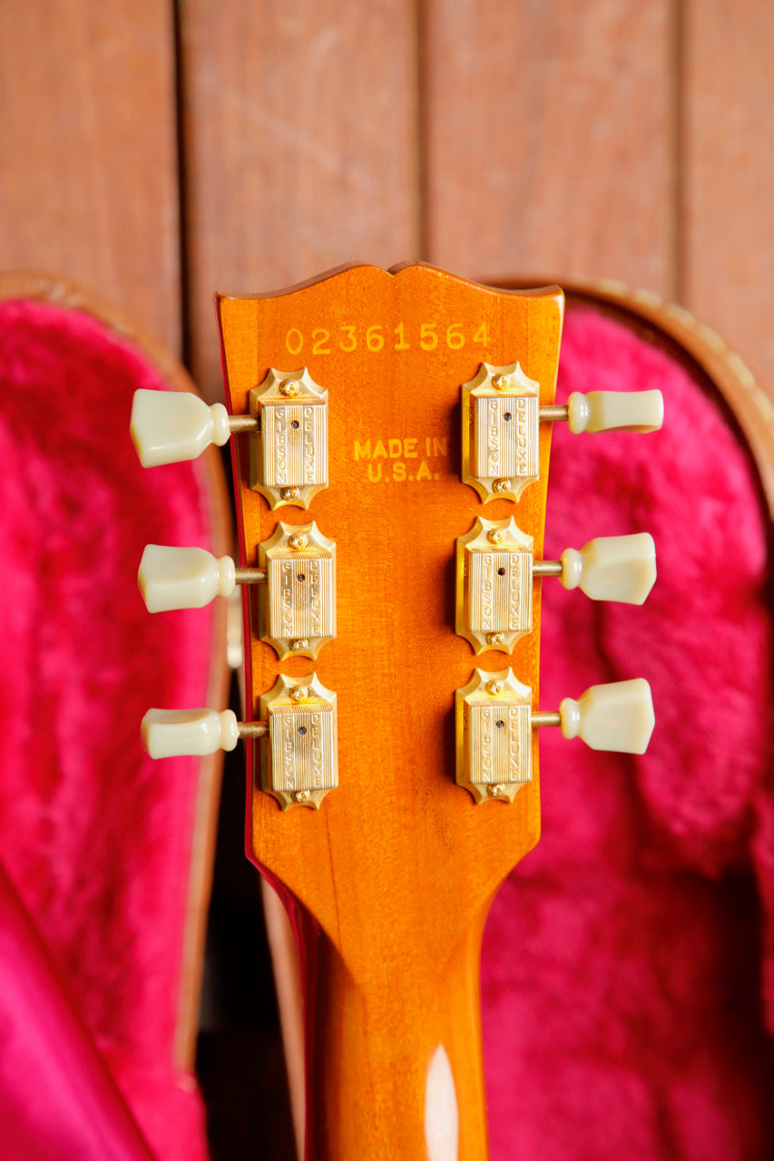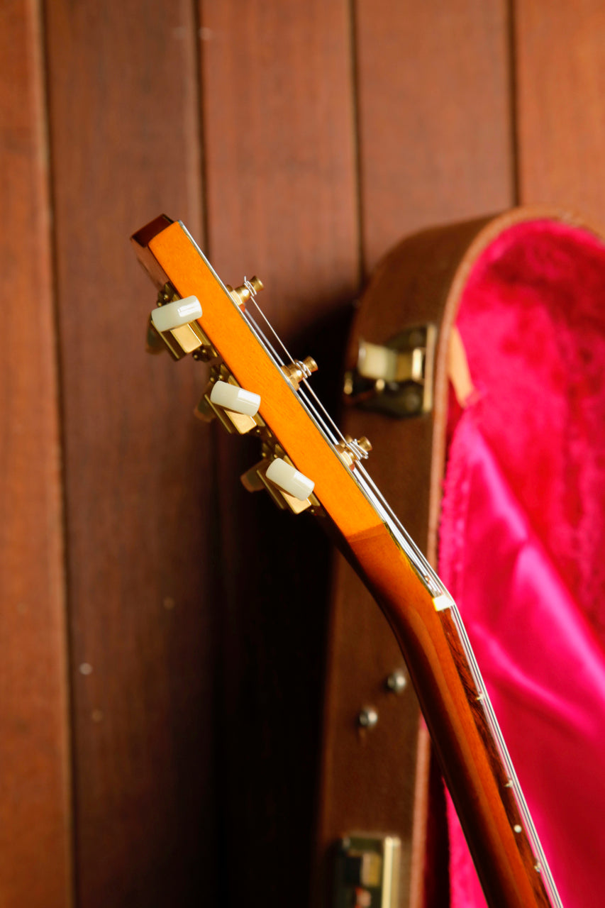 There are some signs of use and and wear including patina to the gold plated hardware and some tiny marks to the finish. The frets are in great condition with minimal wear as pictured.