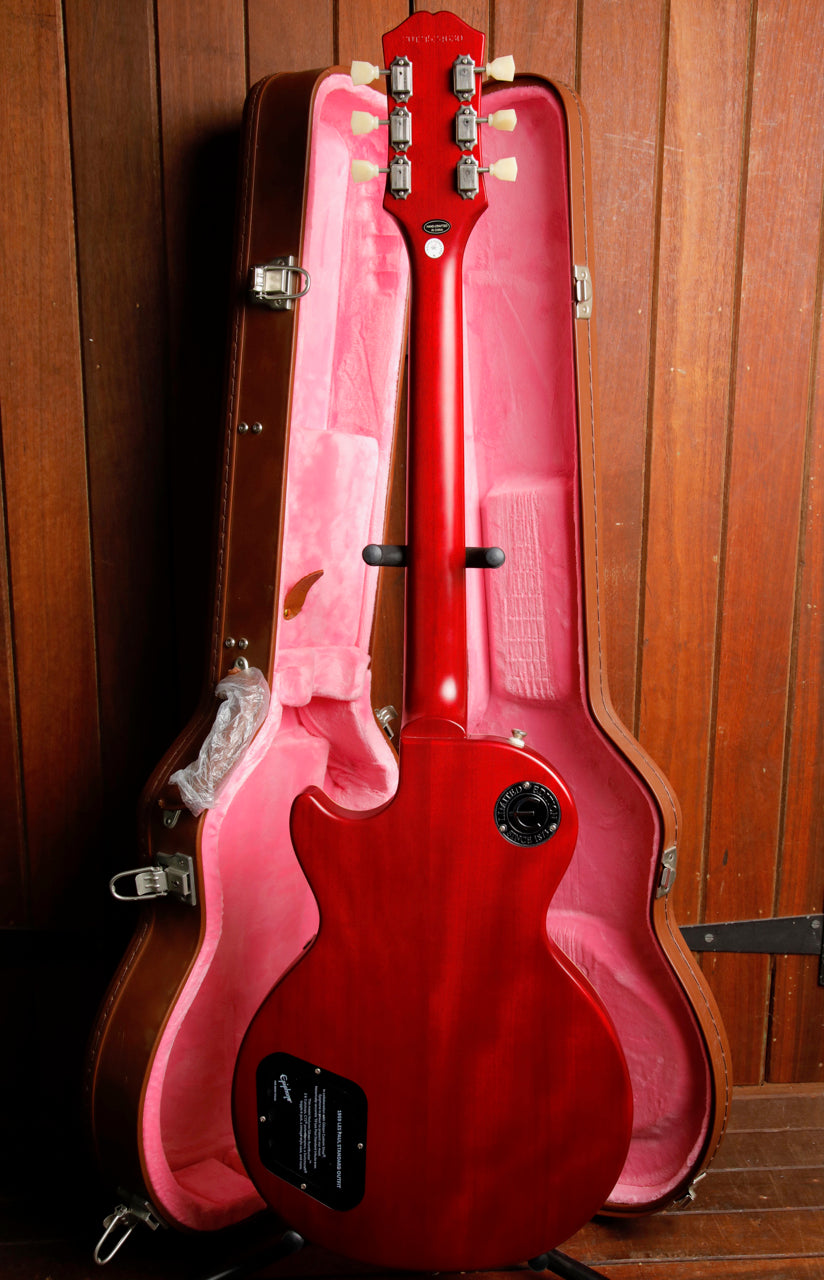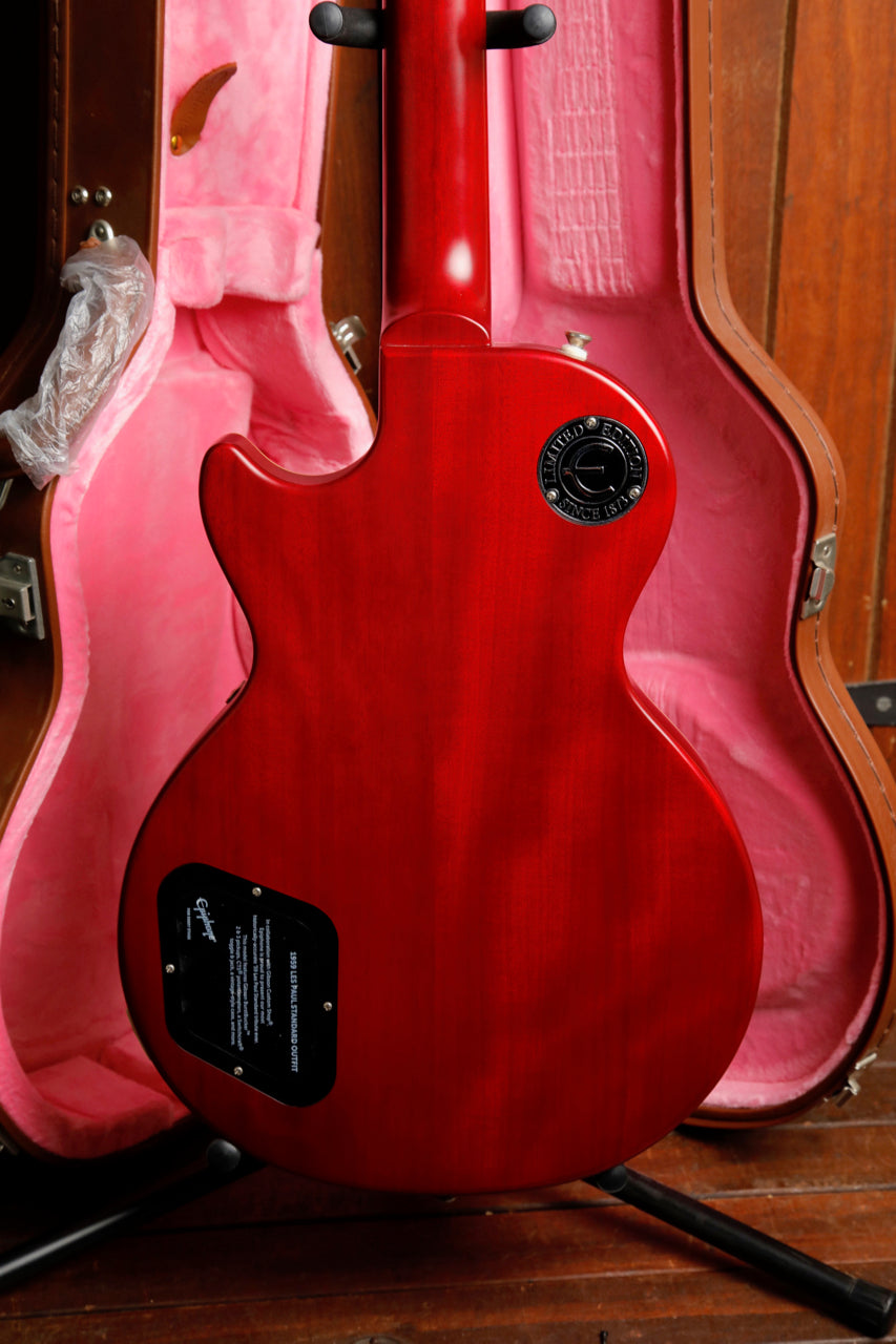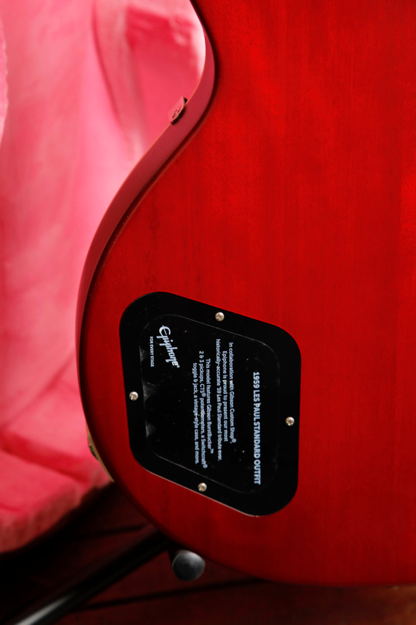 Made in partnership with the Gibson™ Custom Shop, the Limited Edition 1959 Les Paul™ Standard is Epiphone's stunning recreation of the rare vintage classic. Featuring a mahogany body with a maple top with a AAA figured maple veneer, comfortable 1959 hand-rolled neck profile with long neck tenon, aged finish, Gibson USA BurstBucker™ 2 & 3 humbucking pickups, Switchcraft® selector switch and output jack, CTS® pots, 50s era wiring, Mallory™ capacitors, non-beveled pickguard, new Epiphone Deluxe vintage tuners, and a vintage-style brown hard case. It also comes with an Epiphone Limited Edition metal medallion toggle switchplate.