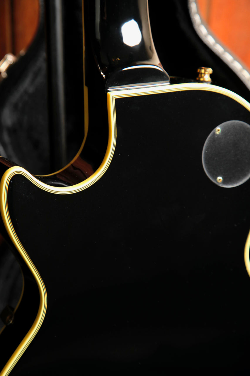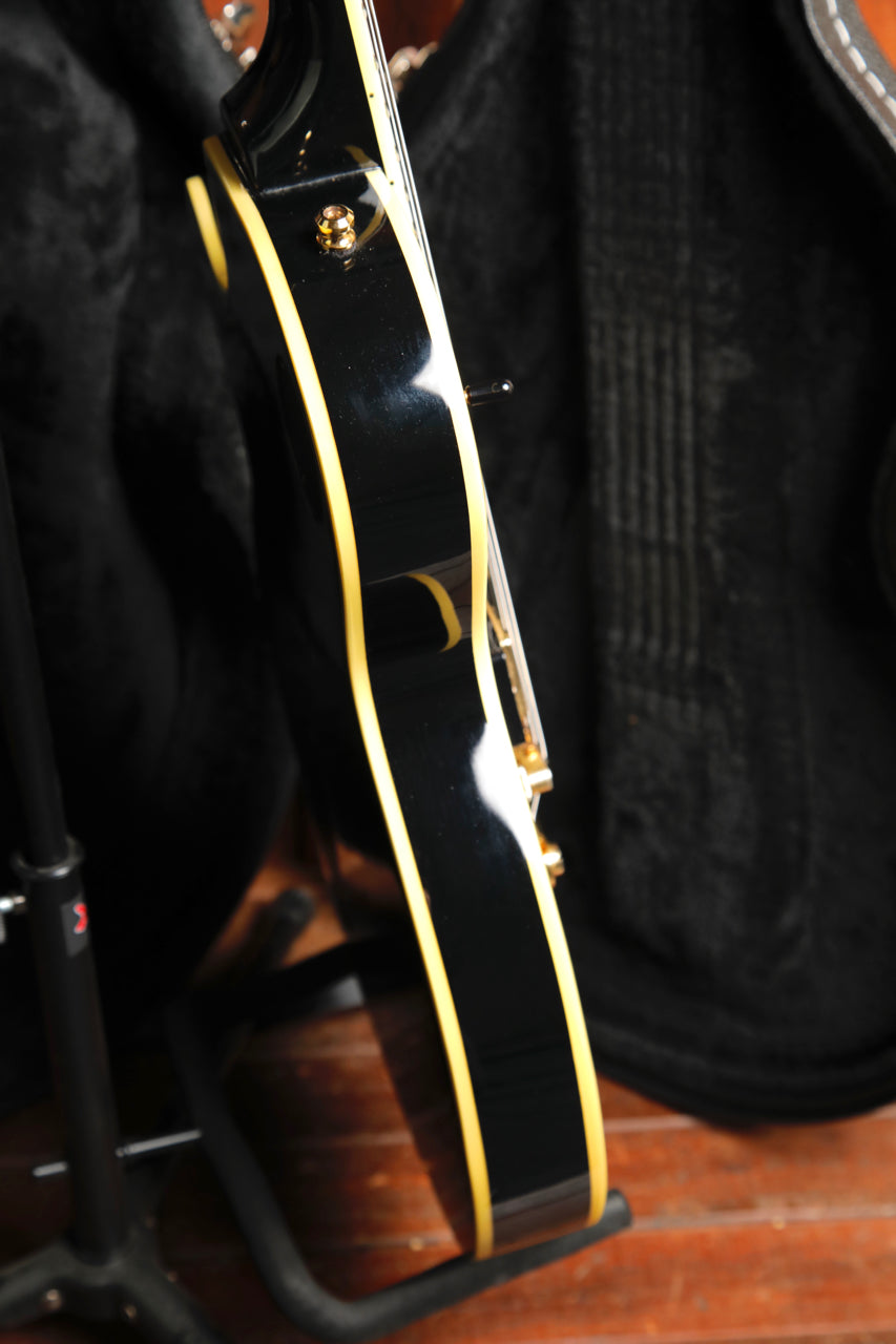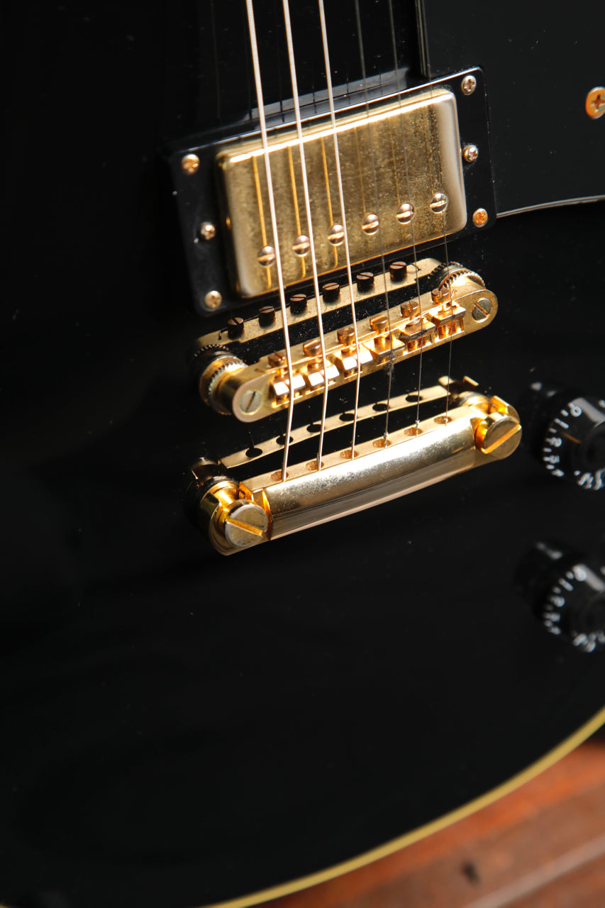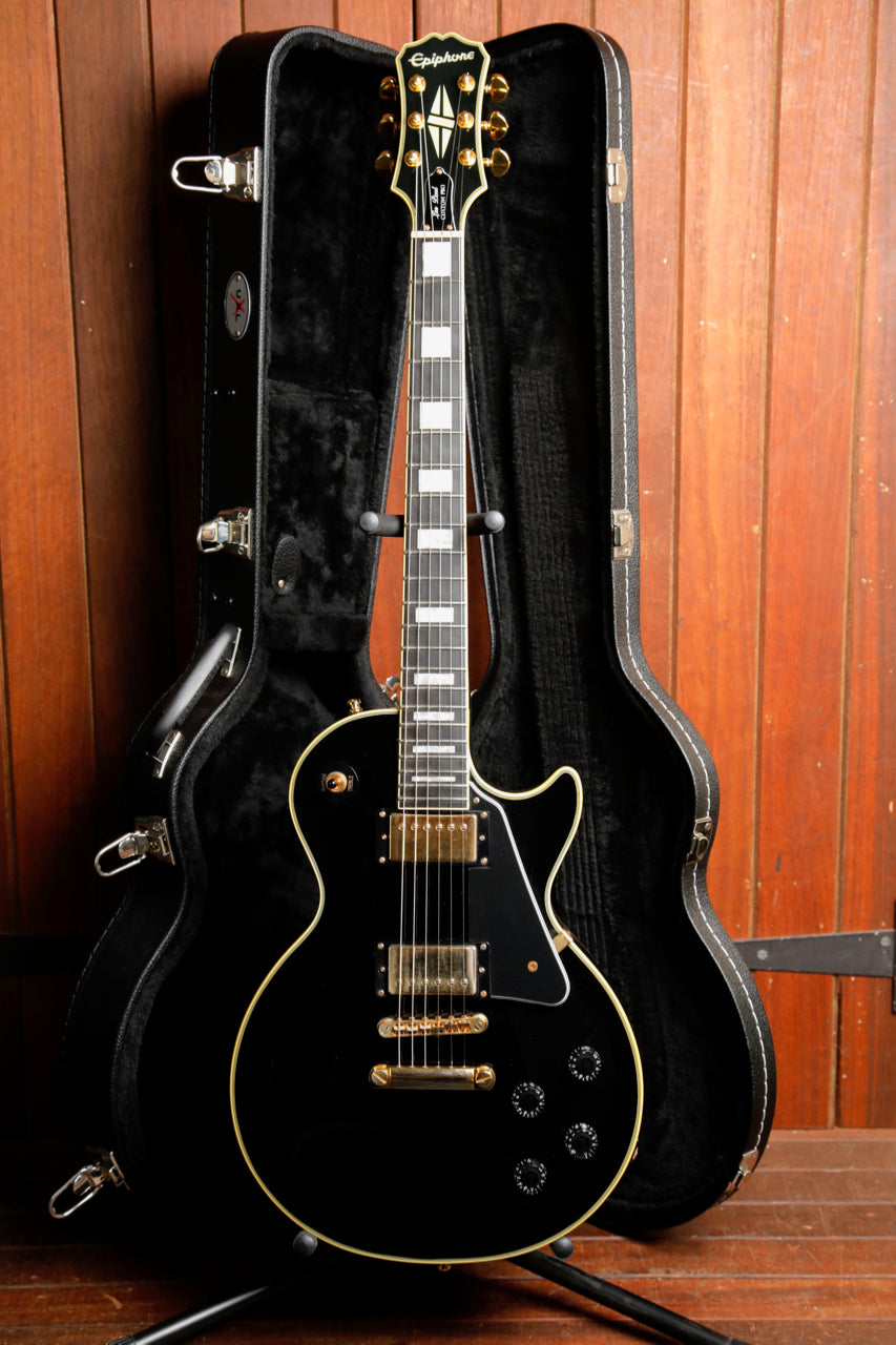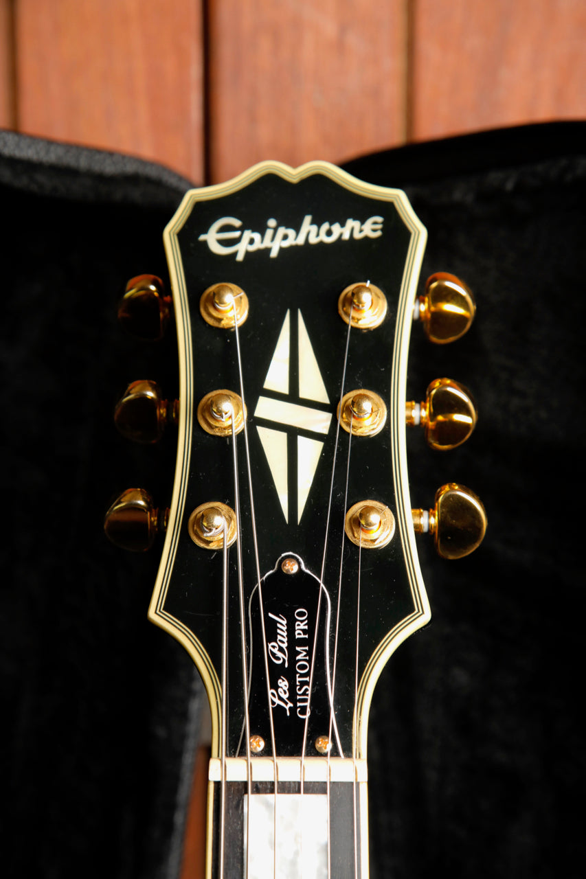 Pre-owned in very good condition, this Epiphone Les Paul Custom Pro looks the part in an ebony finish with gold hardware. A carved maple top and mahogany back meet a pair of Probucker pickups for excellent tones with great sustain.