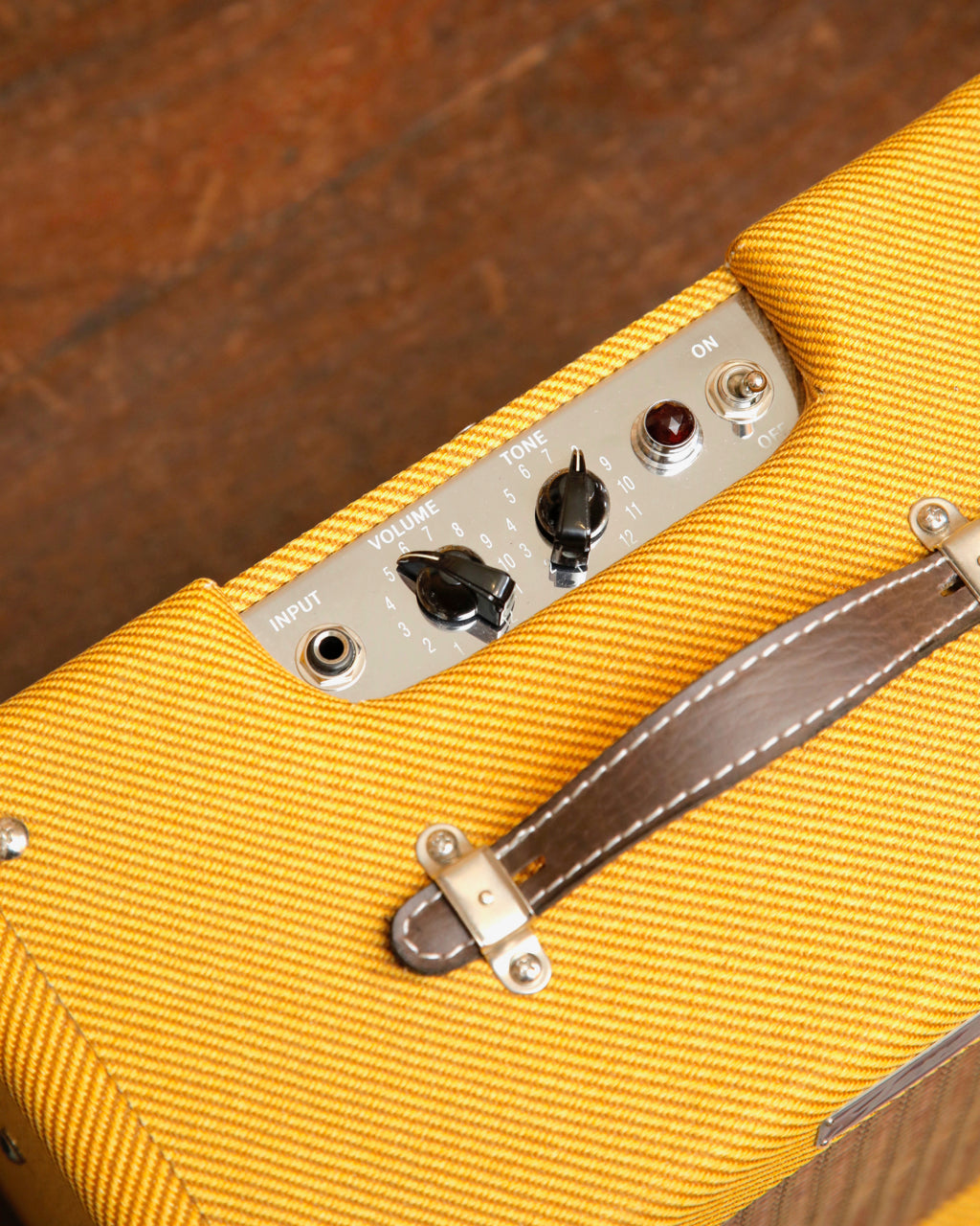 The Pro Junior IV LTD includes a 10" Jensen® P10R speaker for tight, well-balanced output with plenty of high-end sparkle. The modified volume circuit breaks up more gradually, allowing precise gain adjustment to make tones that range from immaculately clean to devilishly mean, and offering tighter bass with improved definition when overdriven. The stage-ready style features a lacquered tweed covering, vintage-style '50s grille cloth, chrome control panel with red jewel light and a leather handle, giving it the unmistakable look and vibe of a classic Fender amp. Reliable, flexible and pedal-friendly, the Pro Junior IV is an ideal addition to any electric guitarist's amp collection.