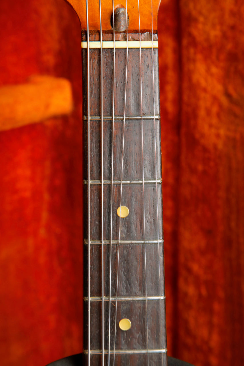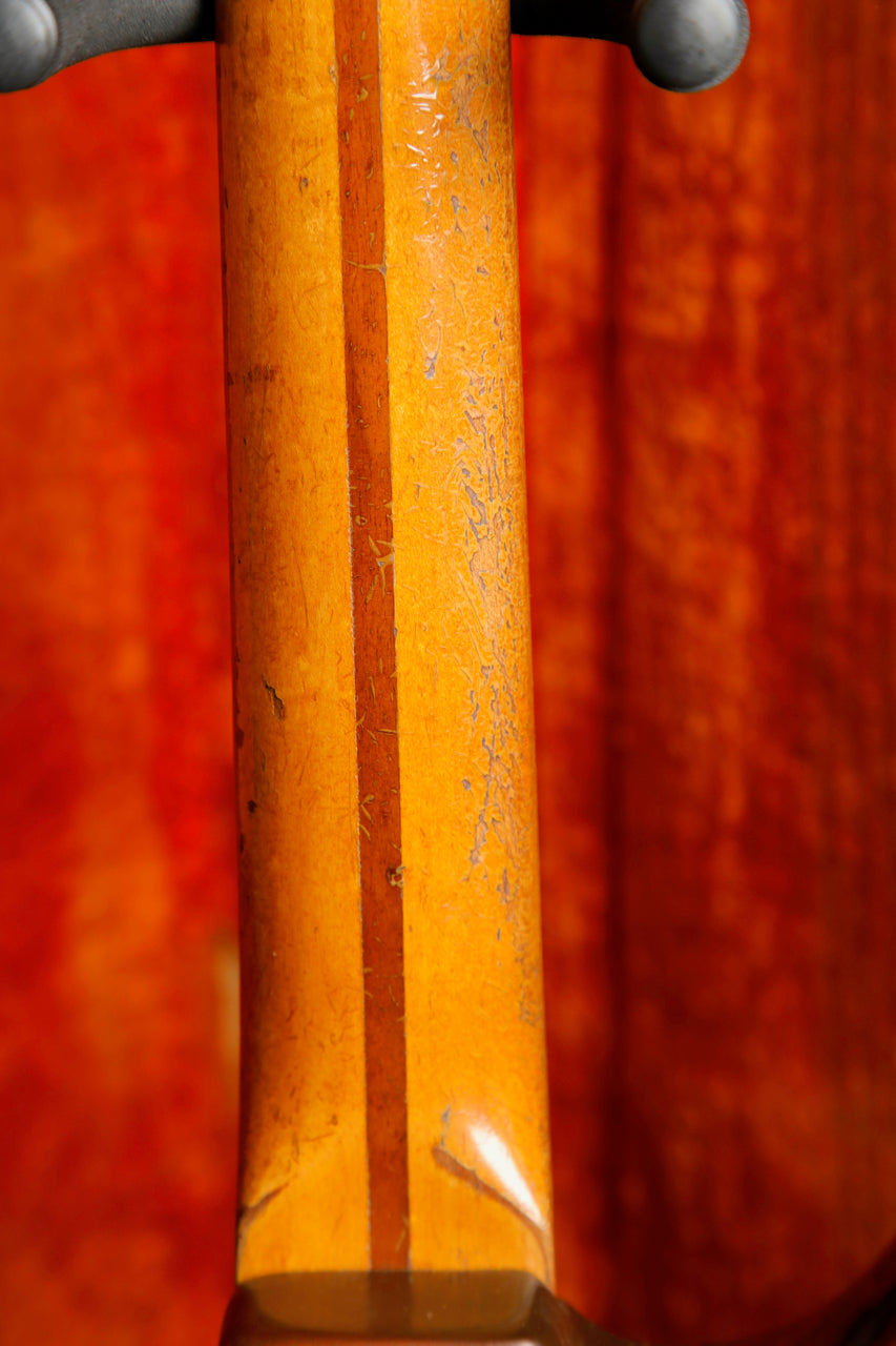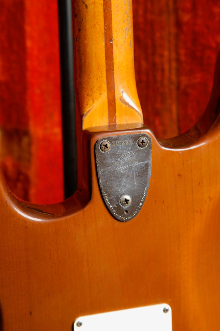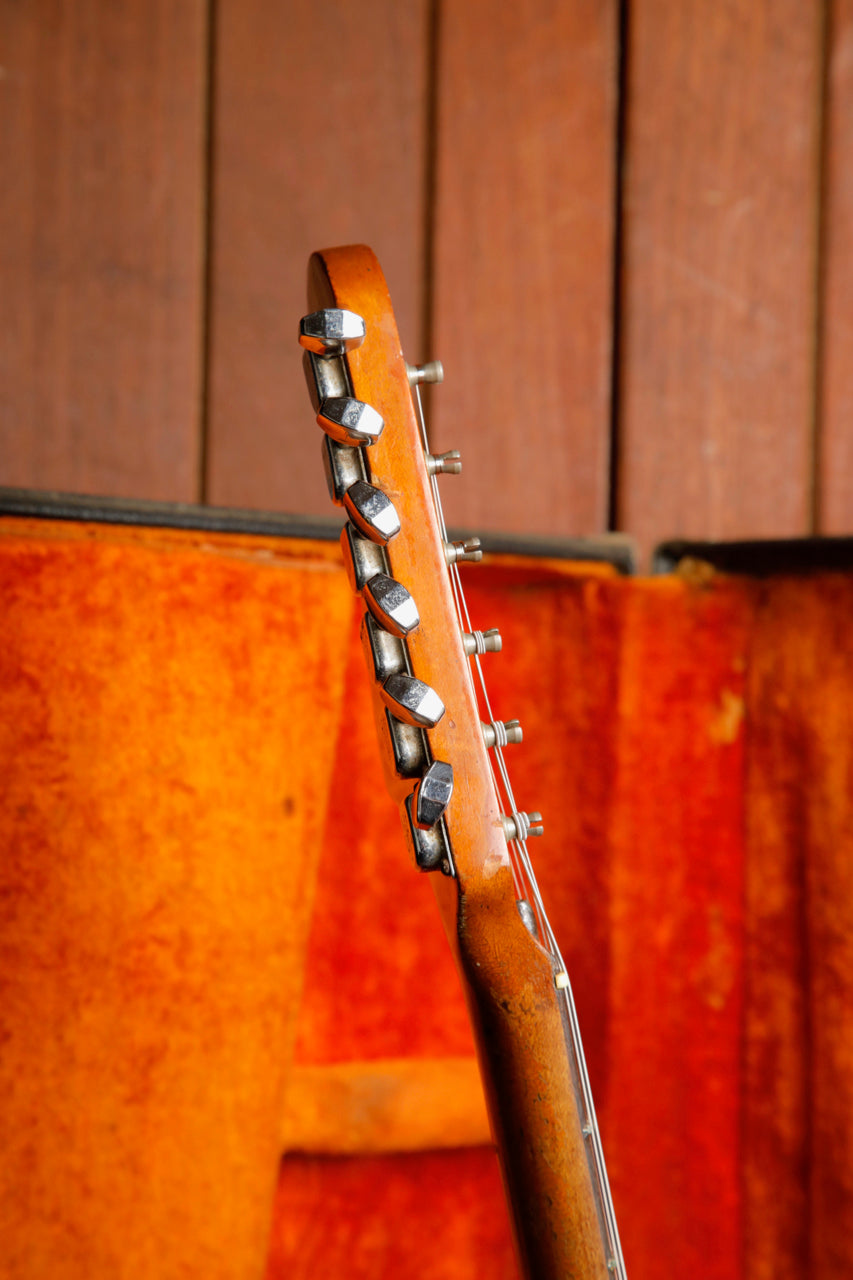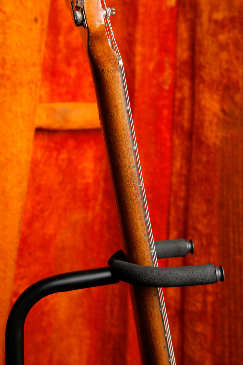 There are obvious signs of wear and age including lacquer wear on the back of the neck and body. The finish has also lightened with age and the hardware has formed surface patina as pictured.