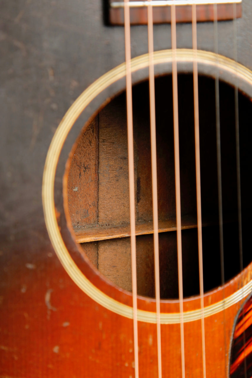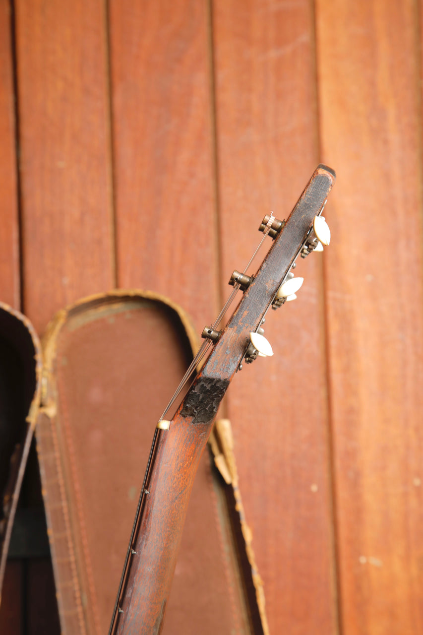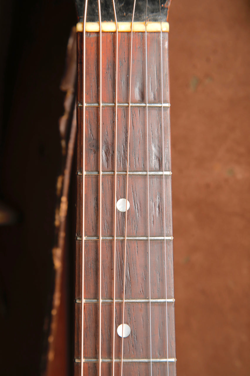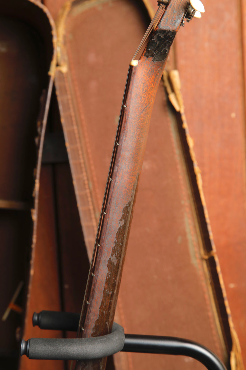 This guitar has just received a professional neck reset, partial refret/crown & dress and a full setup with a new saddle so it is playing beautifully! There has been previous splits repaired on the back & sides of the guitar as well as a previous bridge repair.