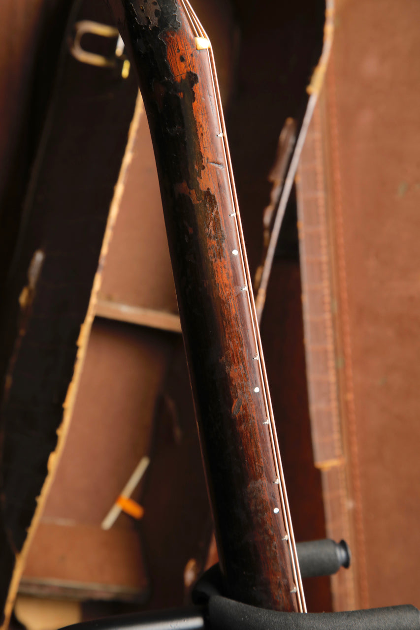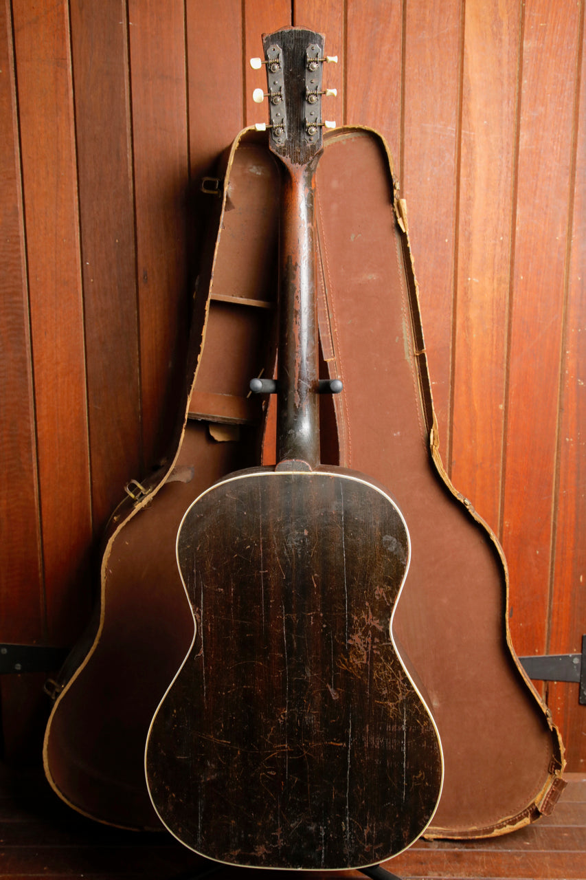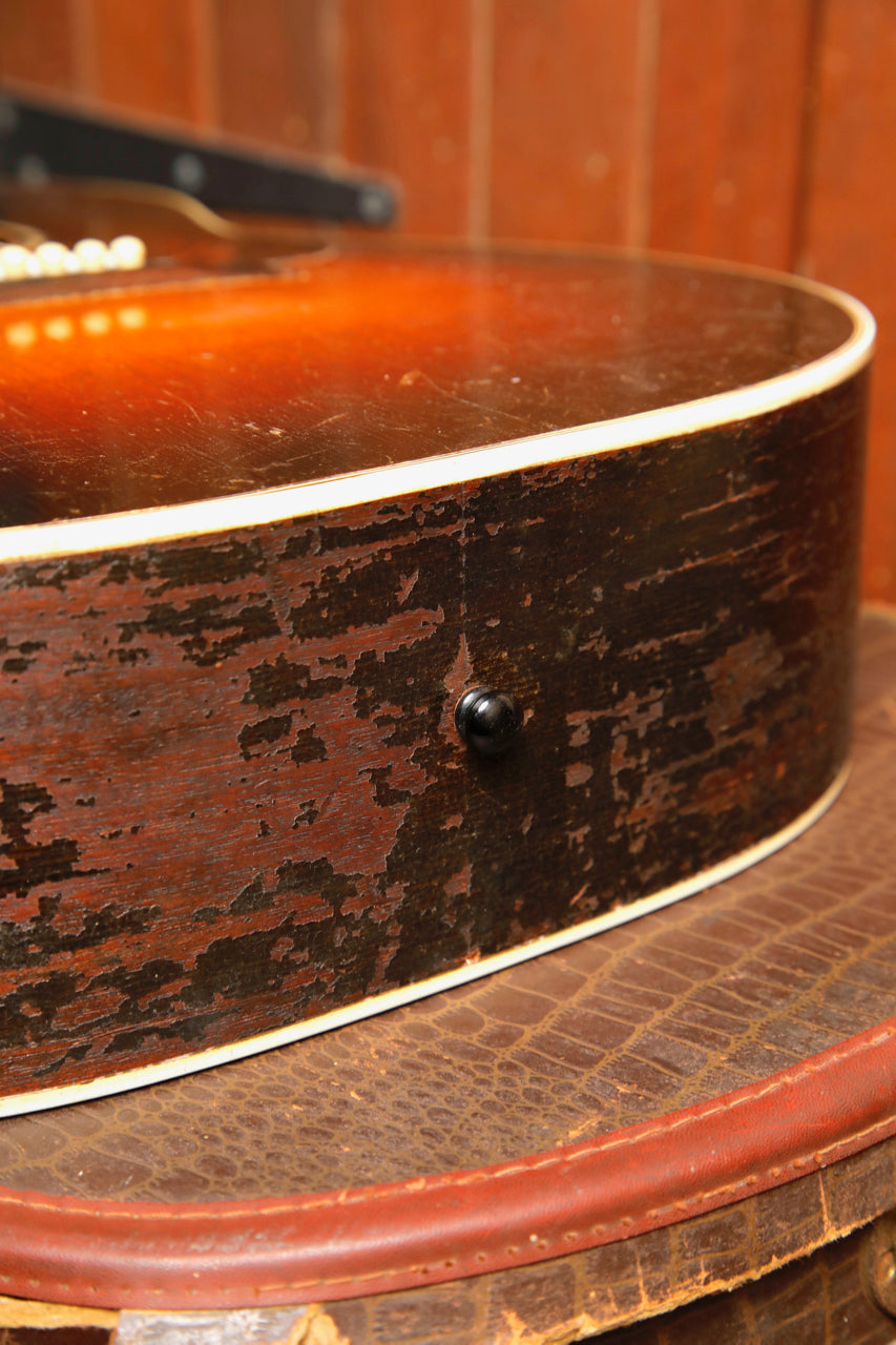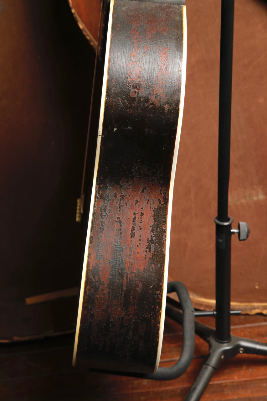 A fantastic piece of history that sounds and plays great. Perfect for the player wanting to record that vintage Gibson acoustic tone in the studio. Comes with original alligator leather case in fair condition.