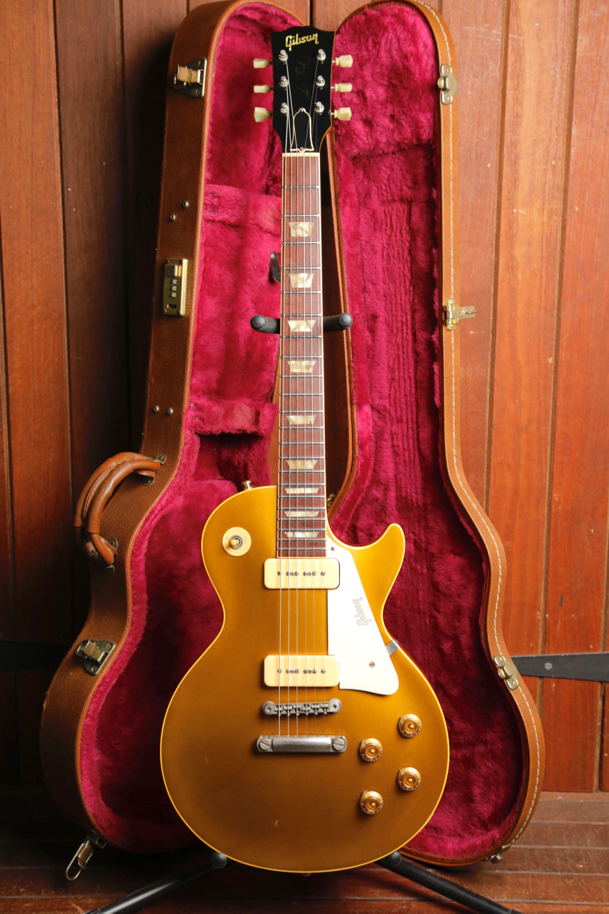 "Gibson Custom Shop is the pinnacle of craftsmanship, quality, and sound excellence. Each instrument celebrates Gibson's legacy through accuracy, authenticity and attention to detail.1956 was the only full year in which the Les Paul model featured the powerful P-90 pickups and the adjustable ABR-1 bridge setup, a combination that allowed the Les Paul model to intonate, sustain, and thrill like never before. This Gibson Custom Shop '56 Reissue captures the look, feel and searing sound of an original 1956 Les Paul Goldtop in exhaustive detail, featuring all solid woods, vintage-accurate gold paint, authentic replica parts, Historic narrow/tall frets, and hot hide glue construction.