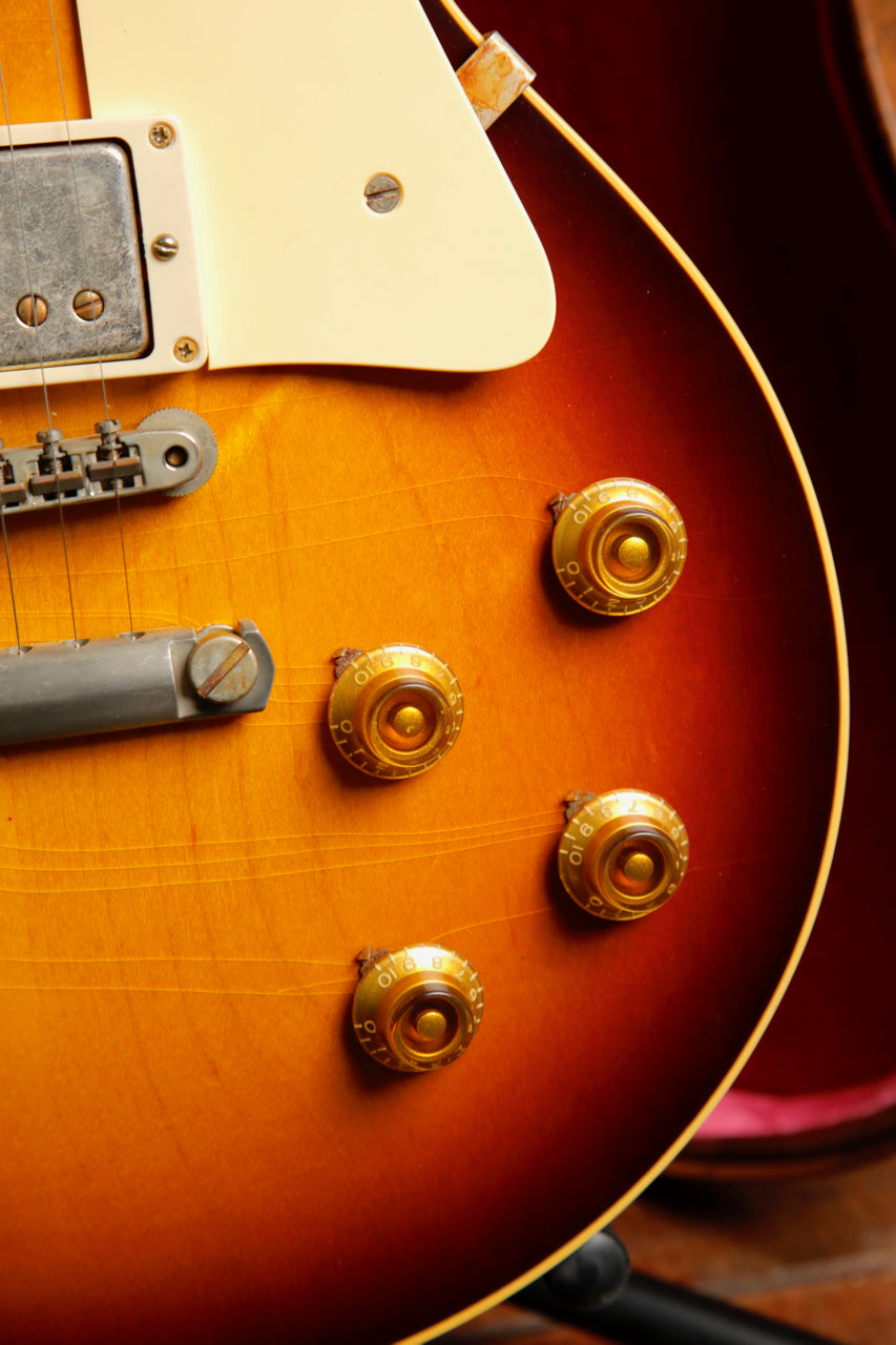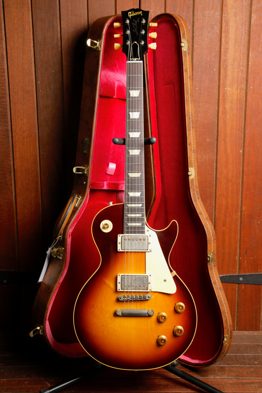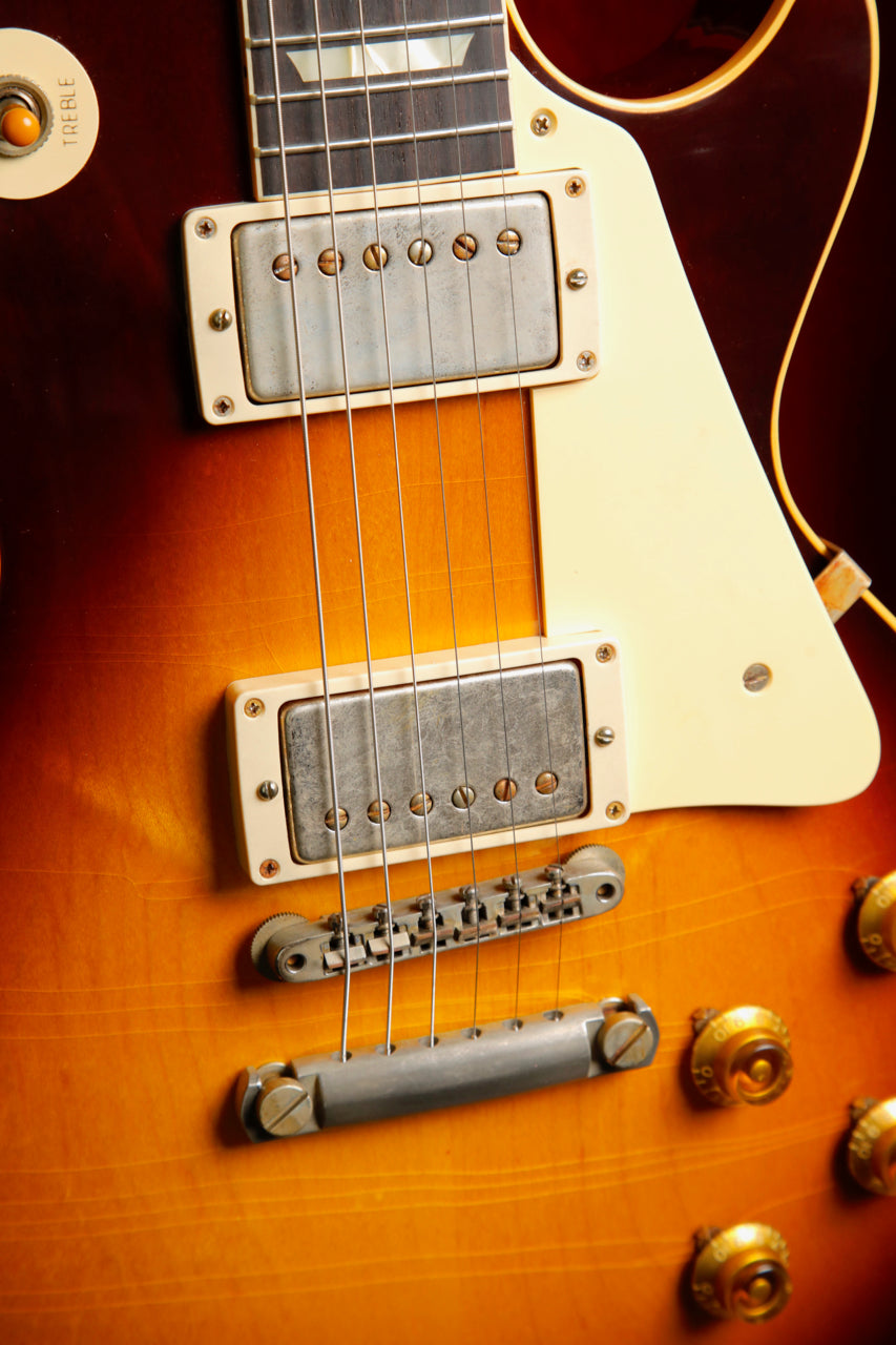 The 1958 Les Paul™ Standard Reissue features all the painstaking historic construction methods of the famous '59 Reissues with a few historically-accurate spec differences that allow it to stand on its own. Like the 1958 originals, it has narrow frets which help more of the fingerboard wood to be heard in the tone profile. It also has a round, chunky neck profile for a full feel and maximum bending leverage. It has a beautiful plain maple top; each is unique and full of character. It also features Ultra Light Aging by the skilled artisans of the Murphy Lab. The Murphy Lab Ultra Light Aged finish treatment, paired with lightly aged hardware, simulates decades of light play wear, giving it the unique character, vibe, and feel of an original example from the Gibson Golden Era.