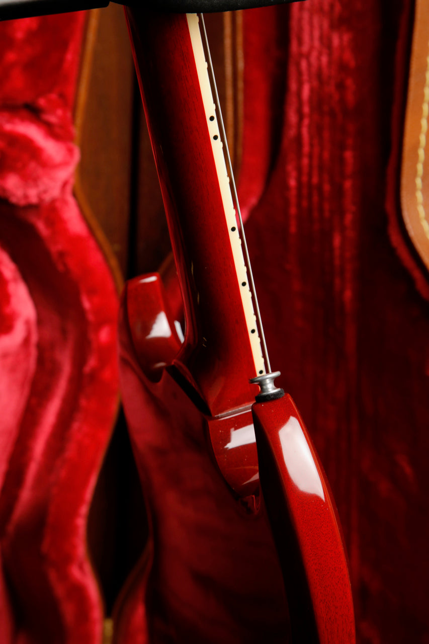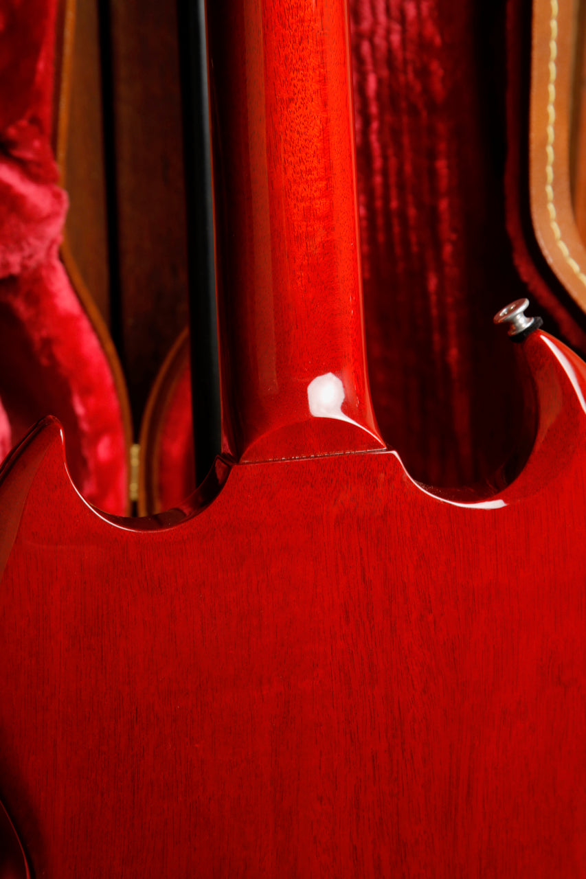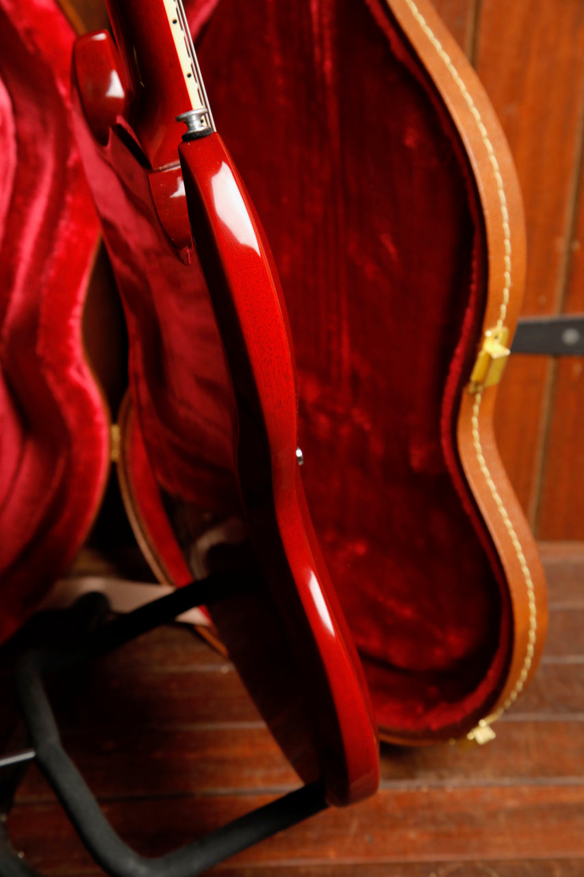 Now here's a great find for the Black Sabbath fan! This Gibson Tony Iommi "Monkey" SG Special features a pair of chrome-covered P-90s that absolutely sing. A classic Vintage Cherry nitro finish meets an adjustable wraparound bridge all finished off with Iommi's signature on the back of the headstock.