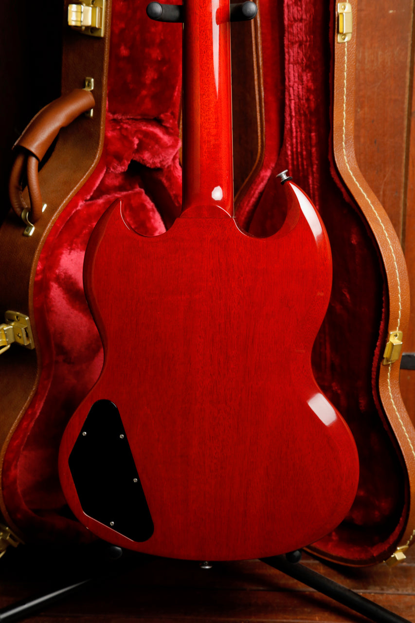 Tony Iommi's iconic riffs, heavy tones, and massively influential albums created the blueprint for heavy metal and many other genres to follow. His career, like the man himself, is universally loved and revered. And while his innovative tuning and playing styles were a major part of his monstrous tones, a heavily-modified 1964 Gibson SG was at the center of it all. Now Gibson USA has made a guitar based on the iconic original that launched countless heavy riffs, with a mahogany body, bound mahogany neck with a rounded profile, Indian rosewood fretboard with 22 frets, a Graph Tech® nut, Grover® Rotomatic® tuners with contemporary style buttons, and chrome-covered P-90 pickups. A reproduction of Tony's "Monkey" sticker is included in the case, along with two longer intonation adjustment screws in case you need additional adjustment range.