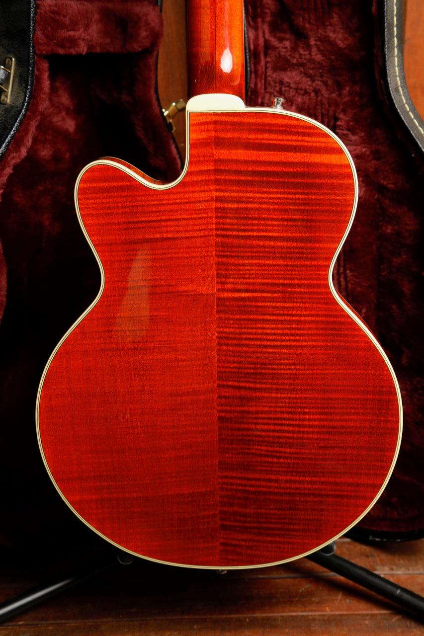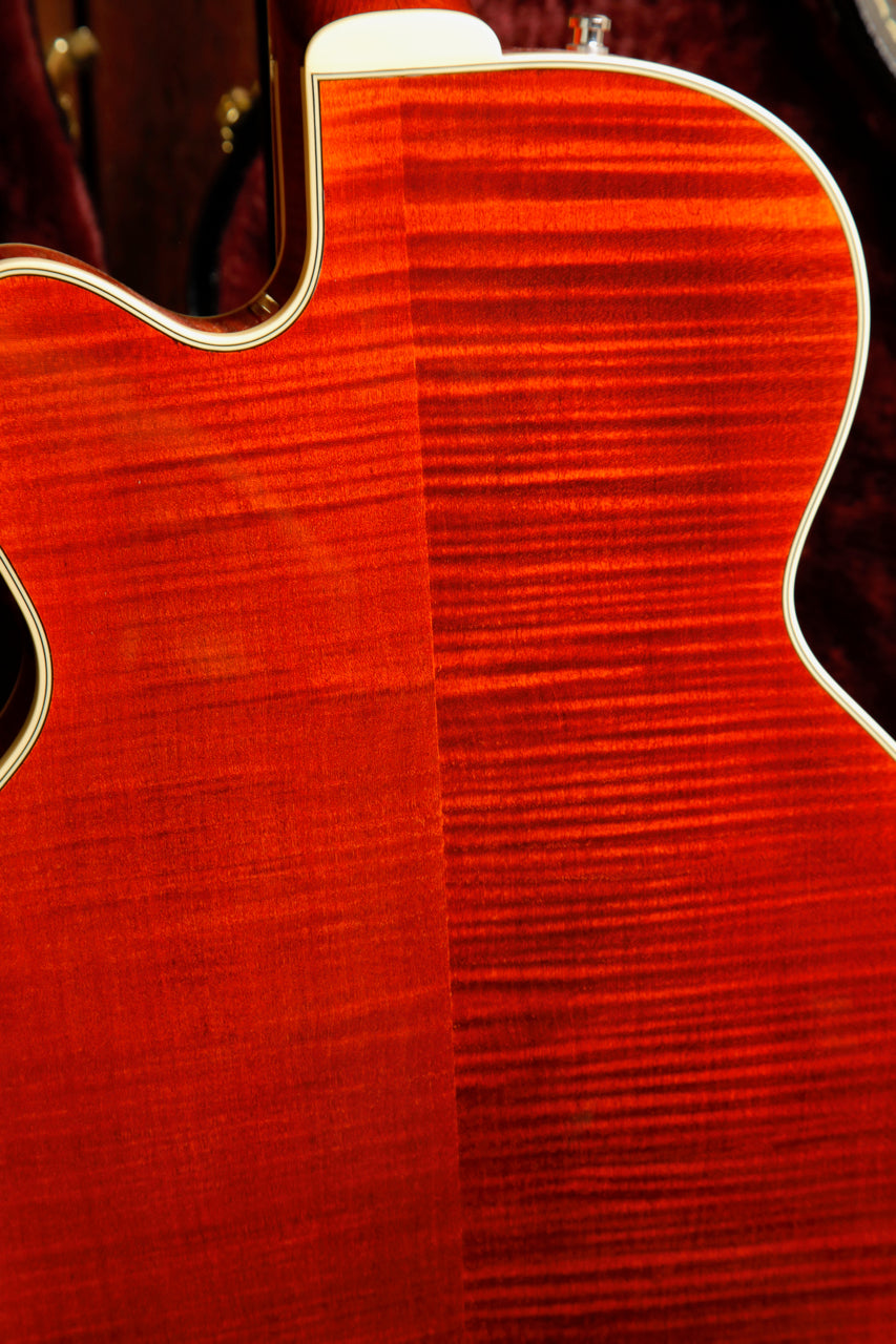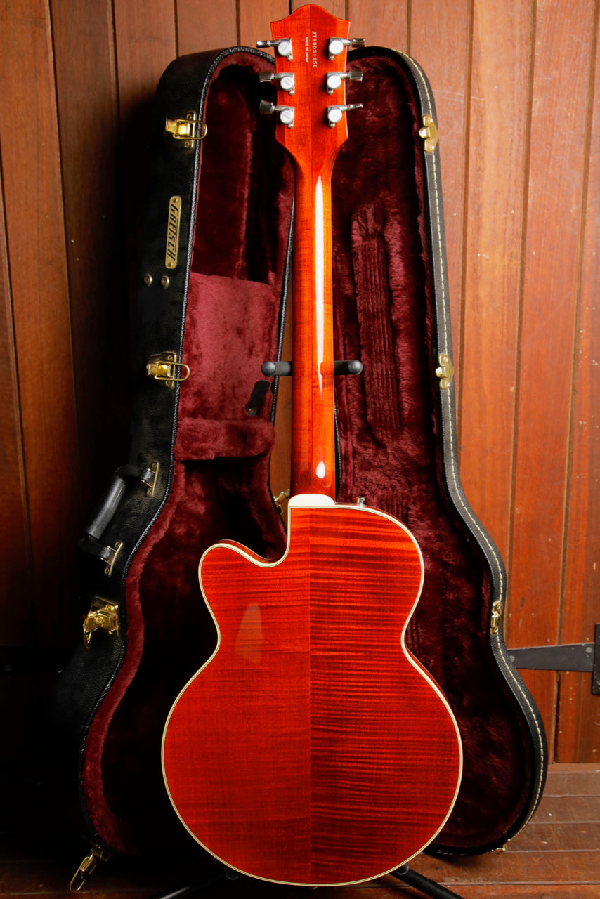 Pre-owned in excellent condition, this Gretsch G6659TFM Players Edition is finished in a lovely Bourbon Stain which lets its flame maple body peek through nicely. This guitar plays beautifully and sounds great with a pair of USA Full'Tron pickups.
