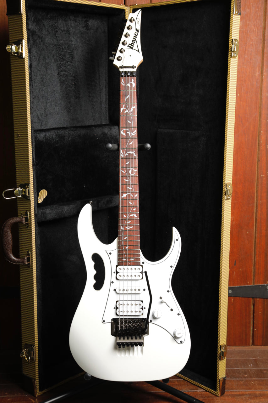 Pre-owned in excellent condition, this Ibanez JEMJR is finished in white which looks great with the classic JEM Tree of Life fretboard Inlay.