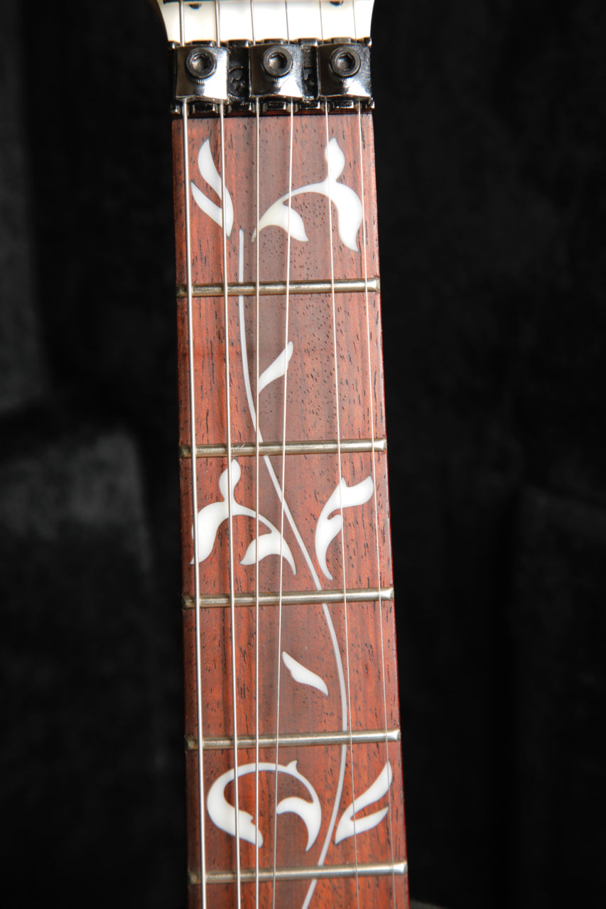 When Steve Vai teamed up with Ibanez in 1987, later he did realize what a lasting impact his signature model guitar would have. Today, the JEM is an iconic instrument immediately identified with the legendary guitarist. Famous for its distinctive look and innovative design, time has seen this popular, upscale guitar become the most counterfeited model in the world. Features two Quantum humbuckers and one Quantum single-coil pickup complete with five-way switching. This slim and super-comfortable neck lets you pull off lighting-fast runs and arpeggios with ease, but still gives you the substance you need for grabbing chords when you need to. The JEMJR Steve Vai Signature packs Ibanez's standard double-locking bridge, which helps you maintain your tuning stability even after heavy pitch bends.