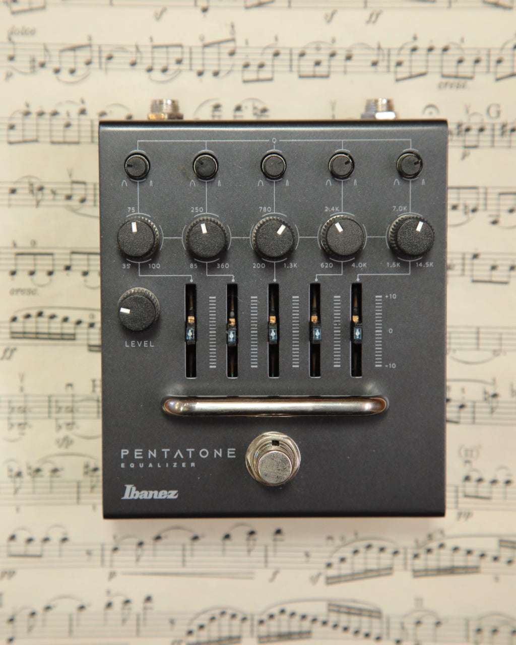 The Pentatone Equalizer is a standalone version of the 5-band equalizer section in the Ibanez Pentatone Preamp. Adding a continuously variable Q control on each band, which allows for a wider variety of sound creation, enables even more detailed sound creation. Furthermore, the ±9V power supply circuitry provides a wide headroom.