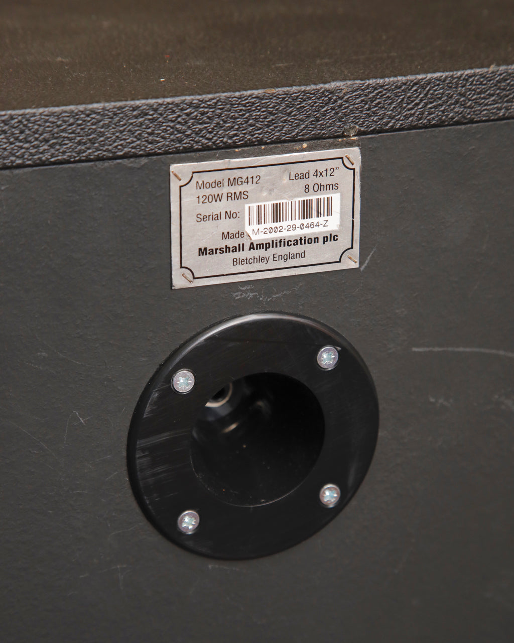 Pre-owned in excellent condition, this Marshall MG412A is capable of pushing out 120-watts of power through its 4x12" speakers.