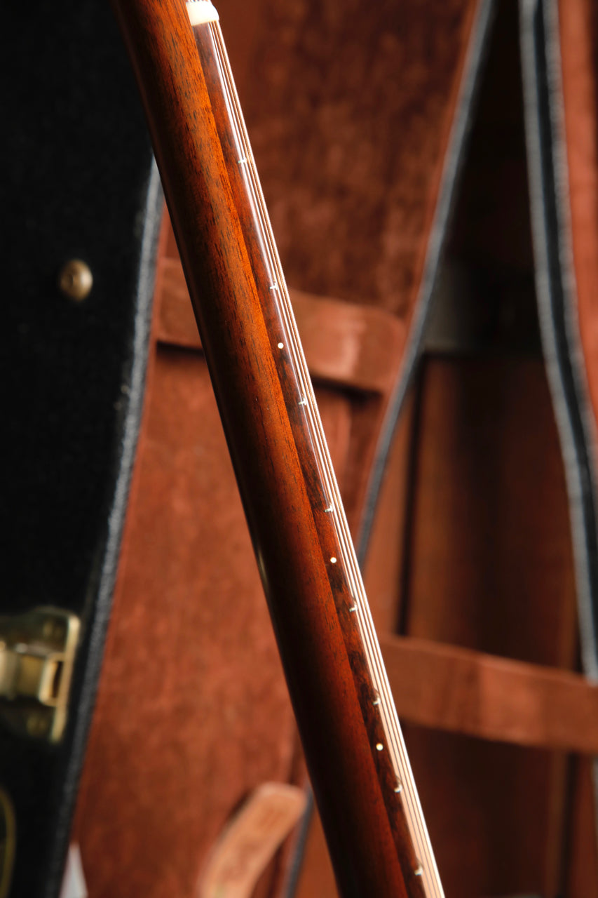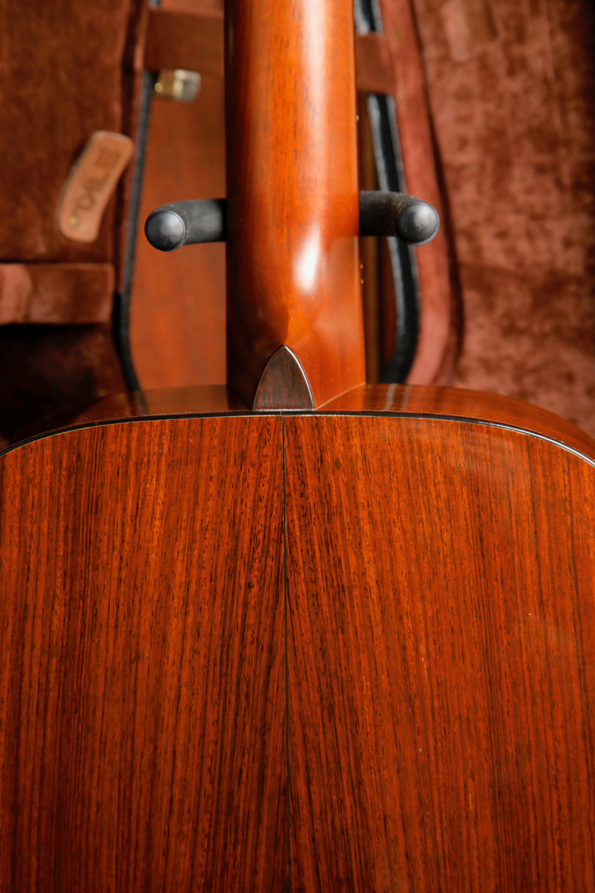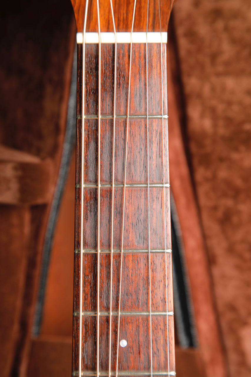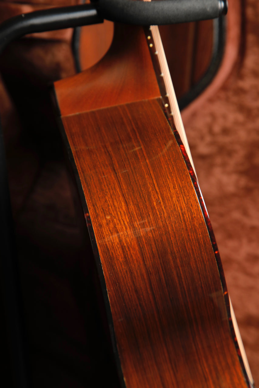 This guitar has seen only light use over the last 23 years with some finish rubbing and tiny scratches. The binding is also lifting in a very small area on the treble side of the top (as pictured) and the machine heads have been replaced with Schaller tuners. The frets are in excellent condition with minimal wear and it is playing well after a fresh setup.