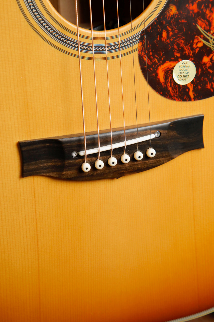 - Back & Sides Finish: Vintage Amber Stain Satin