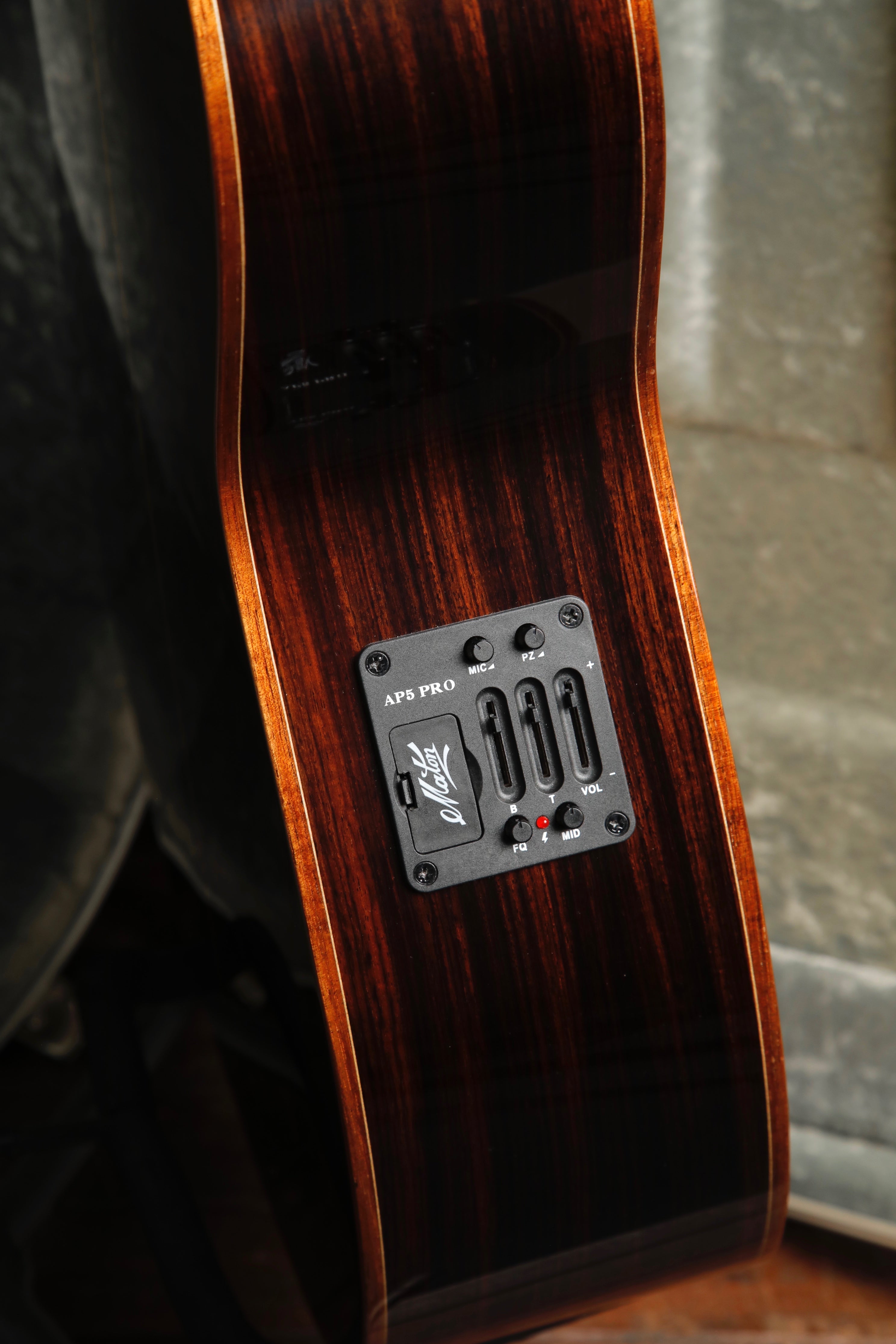 The Maton Messiah EM100 Features tuned, scalloped braced top, and Solid Rosewood back and side sets, this Australian Music Industry icon has taken its classic worldly timbers and expanded its tonal spectrum. A new Solid Mahogany Neck adds thickness to its deeper and richer tone and again the Maton UV paint finishes this model with a finer and more refined quality. The Maton signature M MOP decal on the headstock is the finishing touch to a guitar that is truly a world-class performer.
