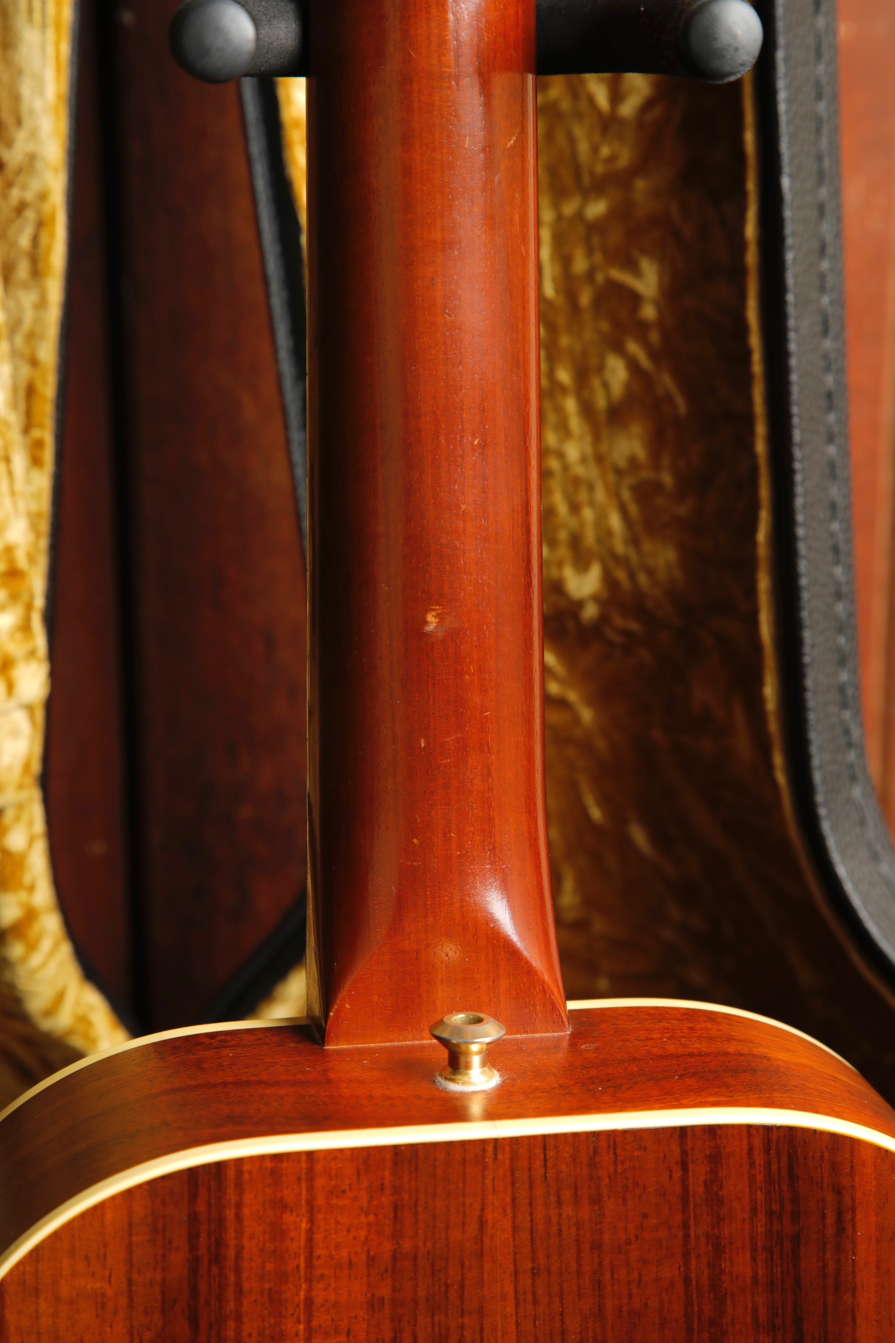 There are obvious signs of wear and use on this guitar with a chip in the back of the headstock and other scratches to the neck and back as pictured. It has been freshly setup and is playing nicely with only a small amount of fret wear.