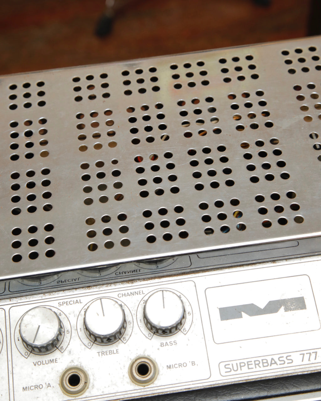 Here's a cool vintage bass amp! This Meazzi Super Bass 777 is a 4x10", 2-channel bass amplifier combo made in Italy.