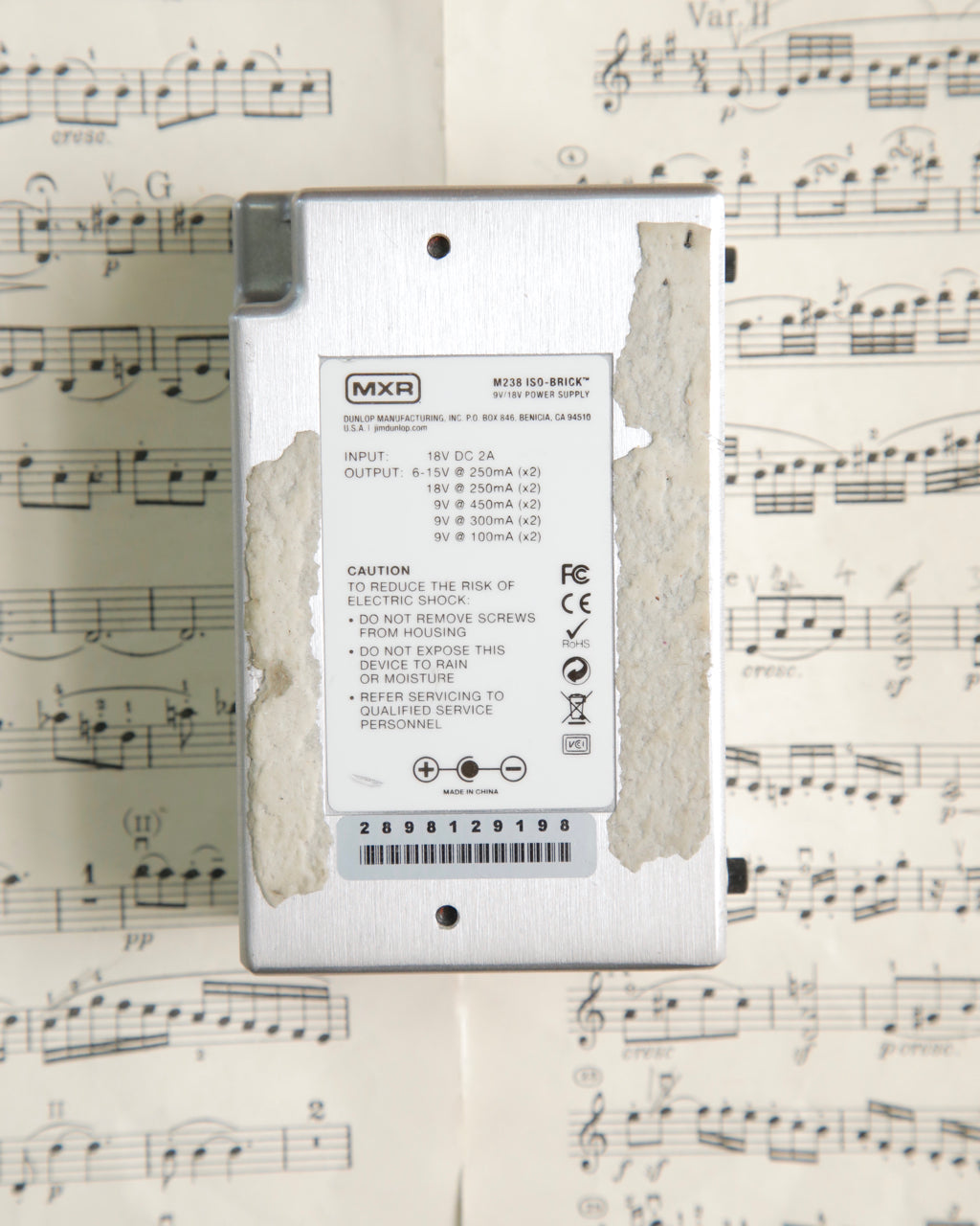Each of the Iso-Brick Power Supply's 10 outputs is fully isolated, eliminating gig-ending ground loop noise. Whether analog or digital, positive or negative ground, this power box has you covered. The MXR team broke down these 10 outputs to accommodate a variety of voltage and current requirements: two 9V outputs at 100mA, two 9V outputs at 300mA, two 9V outputs at 450mA, two 18V outputs at 250mA, and two variable outputs adjustable from 6V to 15V at 250mA. The two variable outputs can be used to emulate voltage "sag", drained battery effect sought by many vintage tonechasers.