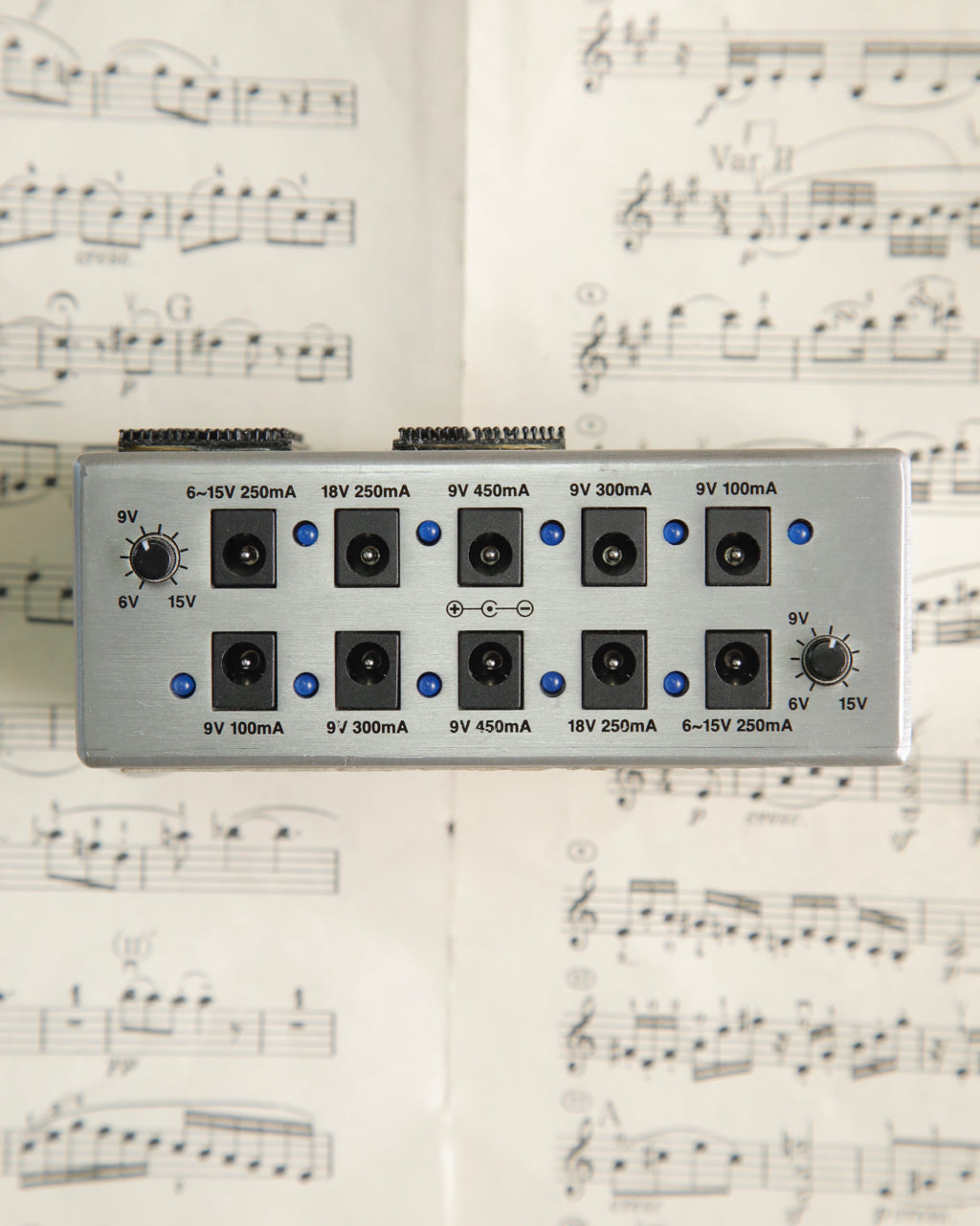 This power supply is light and pedalboard-friendly with ten fully isolated outputs ranging from 9V to 18V—including two variable 6V–15V outputs—and special noise-reduction circuitry for quiet operation.